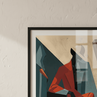 A warm abstract geometric figure emerging from deep red tones, offering a sense of presence and curiosity.
