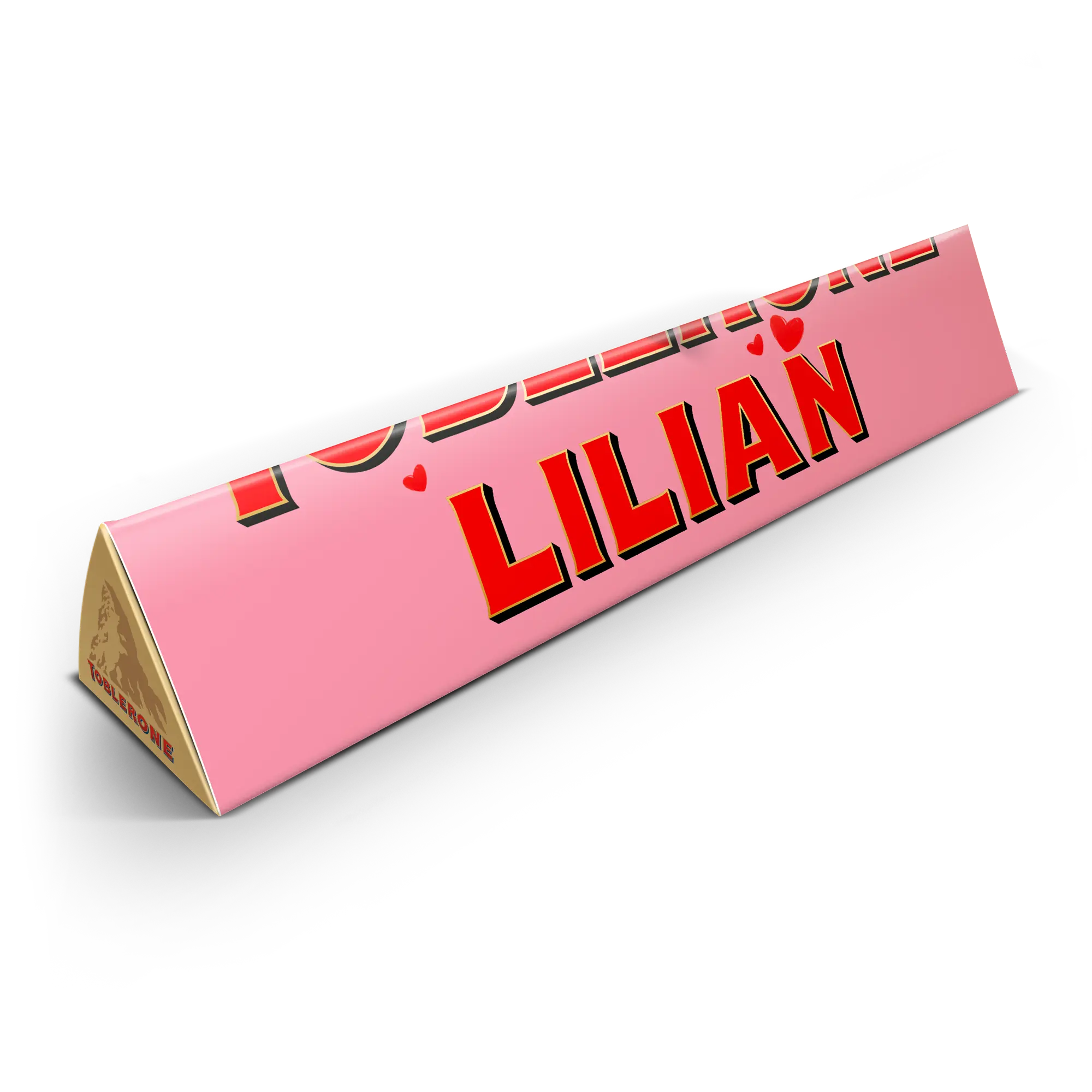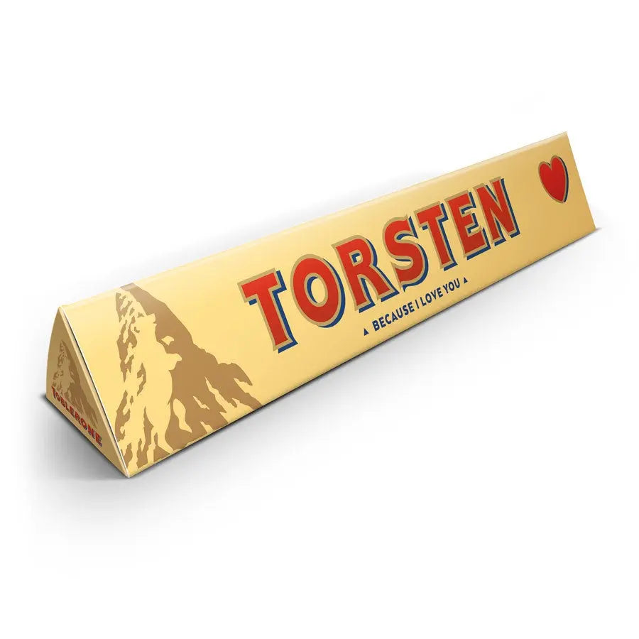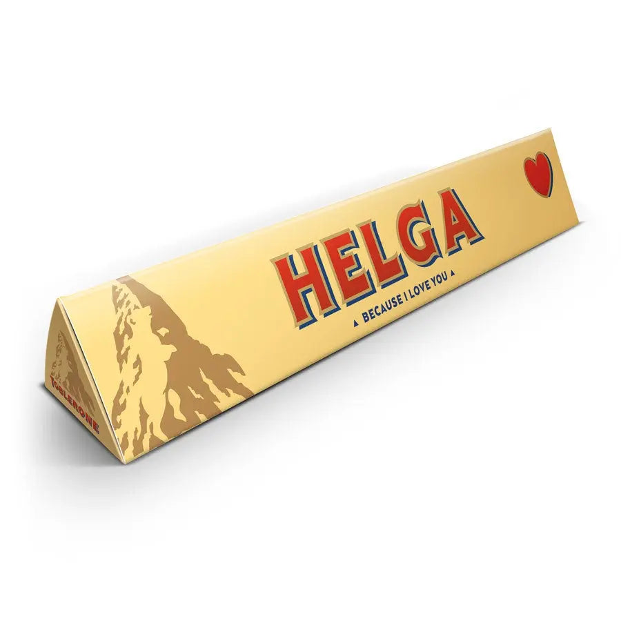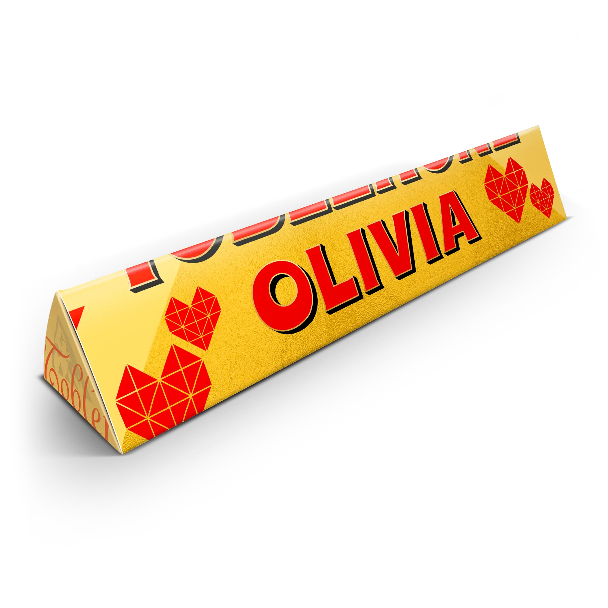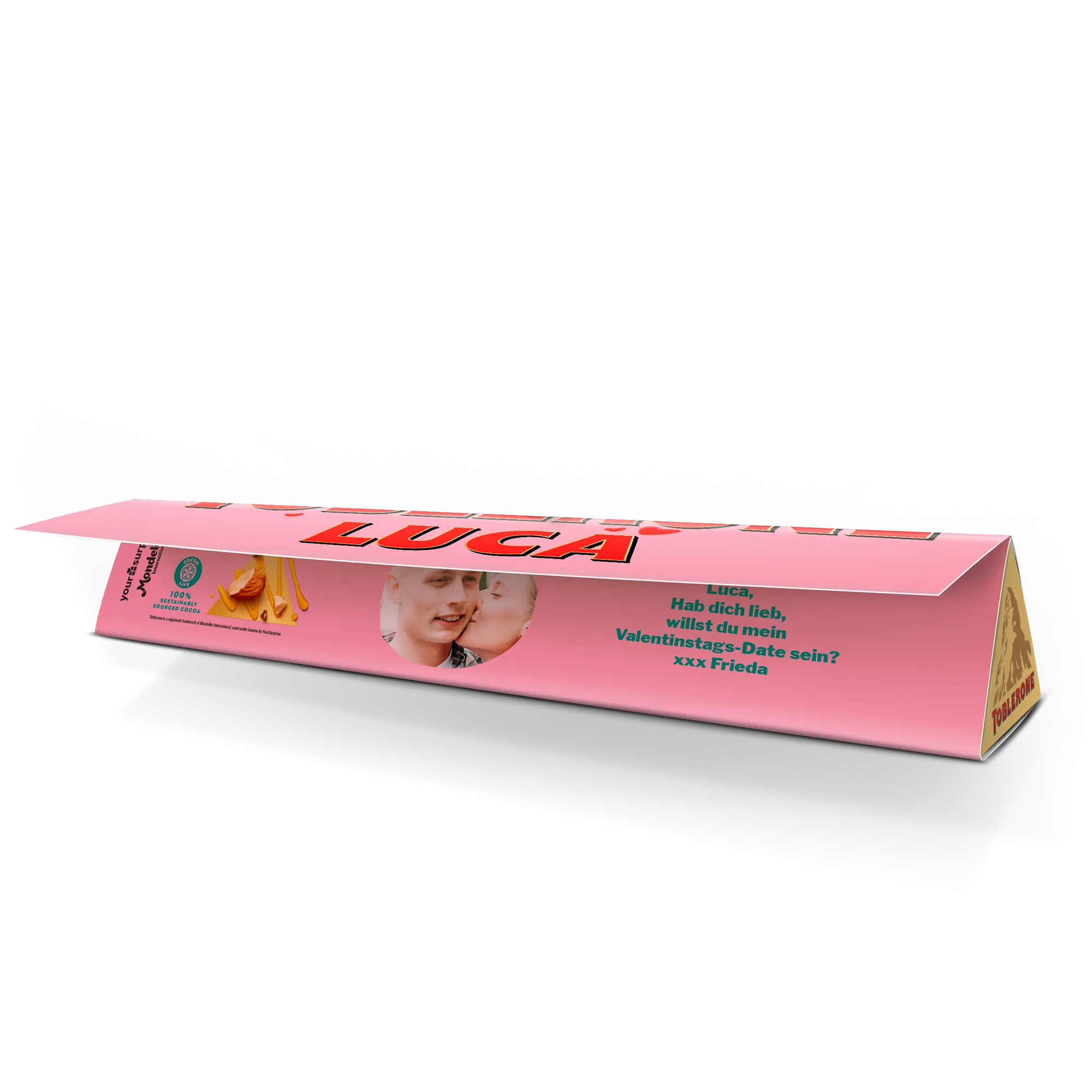 Does your (secret) crush love Toblerone chocolate? Then this personalised bar is the best gift ever. Unique with name, photo and message!More information on the personalised love-themed Toblerone bar:Chocolate: milk chocolate with honey and almond nougatWeight: 360 gramsDimensions: 30.5 x 6 x 5.2 cmPersonalisation: with photo, name and messagePrint: razor-sharp and in full colourFor technical reasons, it is not possible to use Cyrillic, Turkish, Asian, Arabic, Greek or special characters.Ingredients:Sugar, whole milk powder, cocoa butter, cocoa mass, honey (3%), milk fat, almonds (1.6%), emulsifier (soy lecithin), egg white, aroma. The milk chocolate contains at least 28% cocoa. Allergens:Contains eggs, milk, soy, almonds and may contain traces of other nuts. Our Toblerones are made with chocolate from Switzerland.