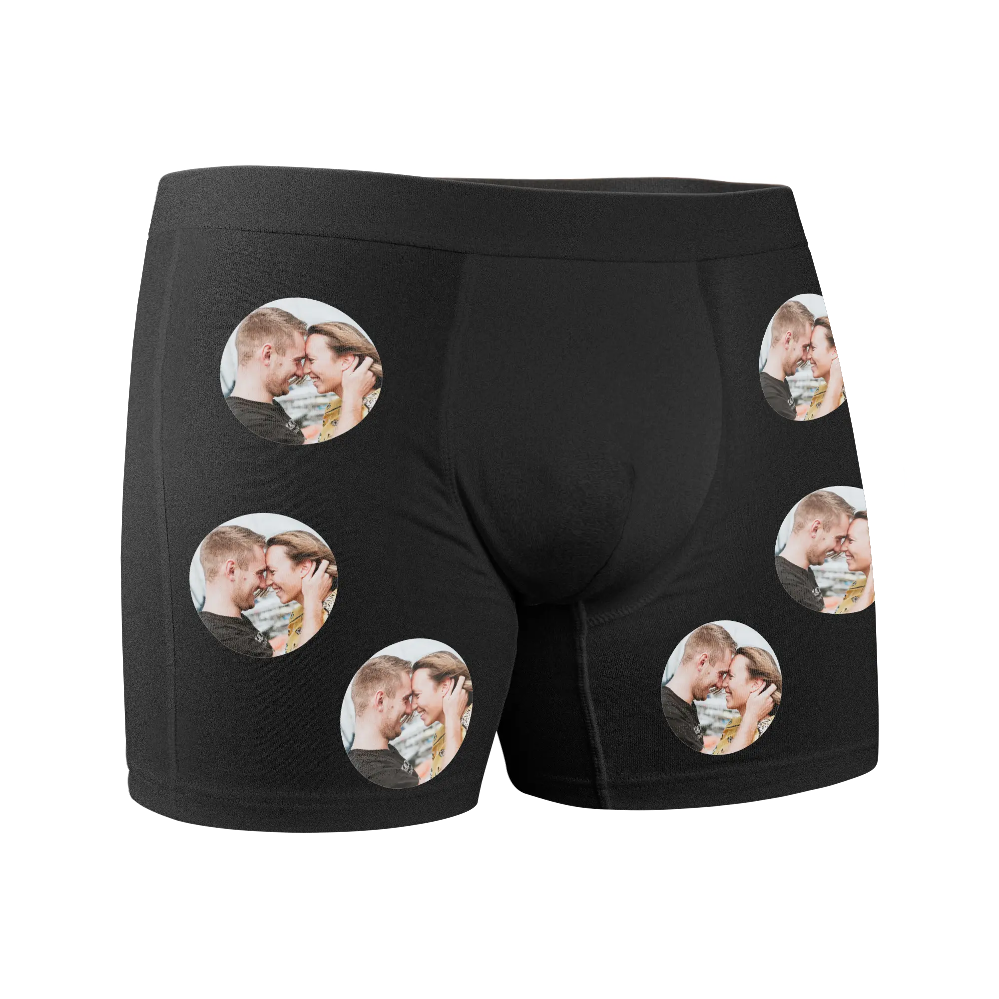 Surprise him with a practical, fun gift. Add the photo or logo of your choice to these comfy boxer shorts!More information on the personalised boxer shorts:Material: stretch jersey, 95% cotton, 5% elastaneWaist: 71 - 76 cmSide length: 29 cmColour: blackSize: LPersonalisation: with photo or logoPrint: picture-perfect and in full colour, both on the front and backExtra: We advise you to choose a larger size than usual, sizes may run small.Additional information: with elastic waistband. Wash at 30°C, air dry recommended