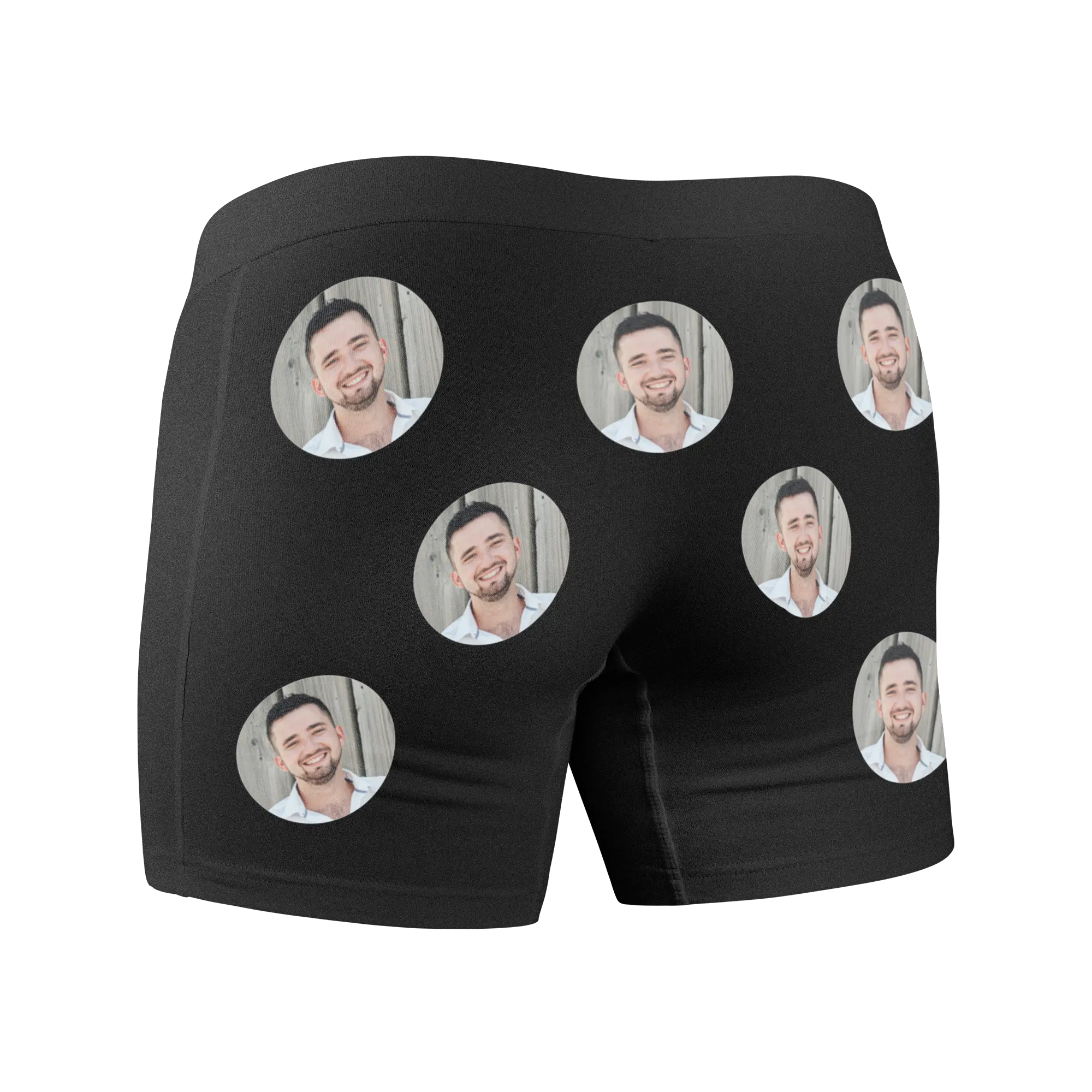 Surprise him with a practical, fun gift. Add the photo or logo of your choice to these comfy boxer shorts!More information on the personalised boxer shorts:Material: stretch jersey, 95% cotton, 5% elastaneWaist: 76 - 80 cmSide length: 30 cmColour: blackSize: XLPersonalisation: with photo or logoPrint: picture-perfect and in full colour, both on the front and backAdditional information: with elastic waistband. Wash at 30°C, air dry recommendedSizes may run small.