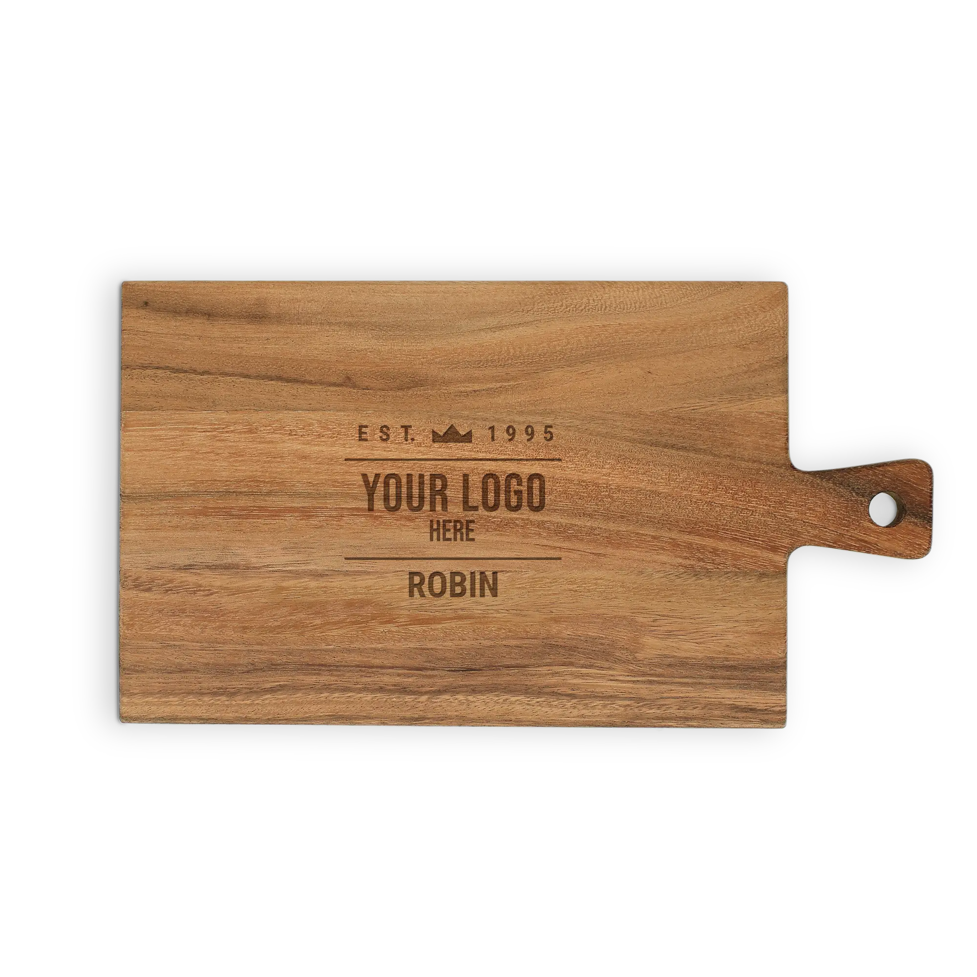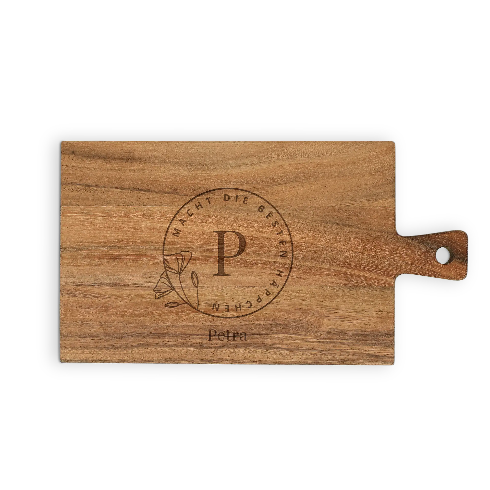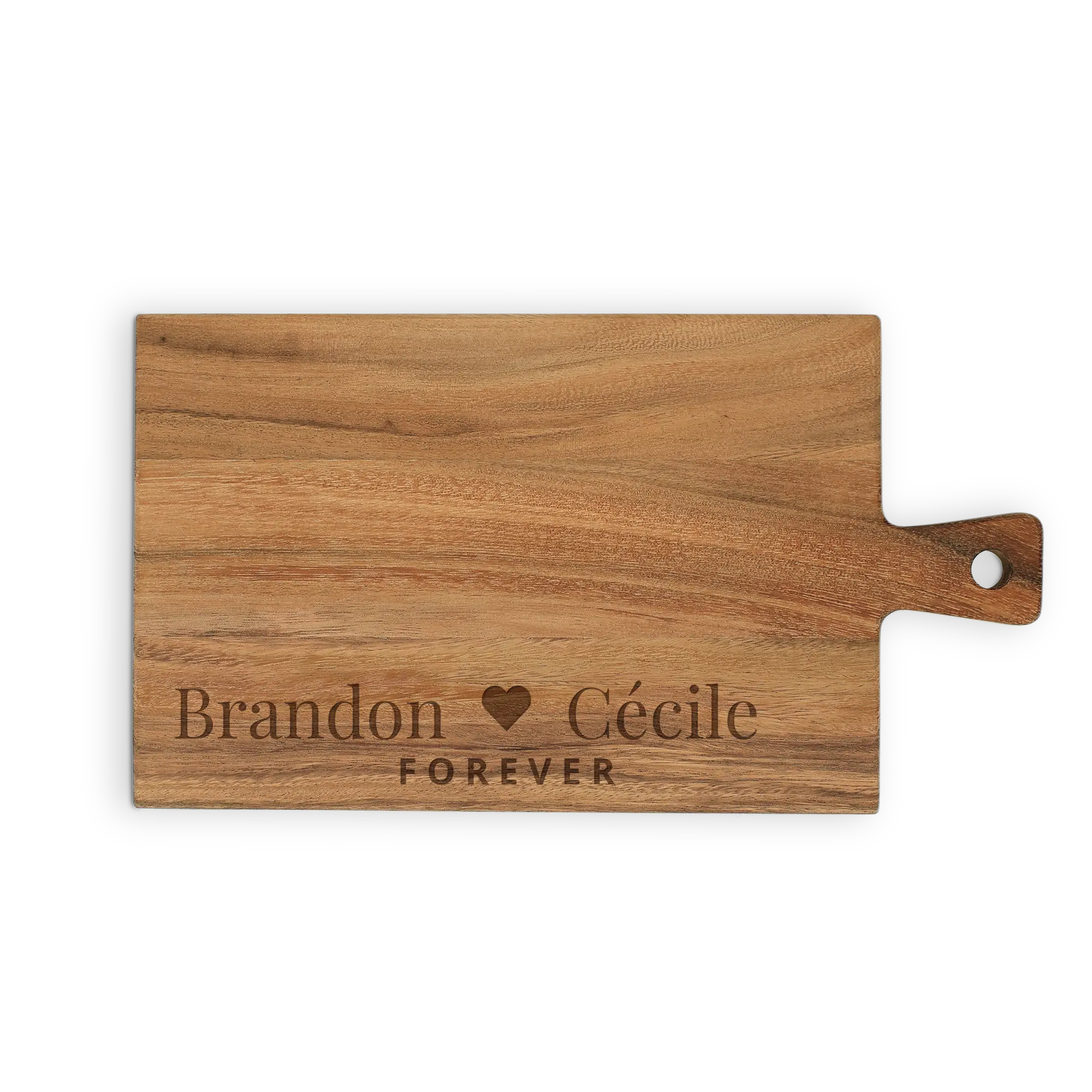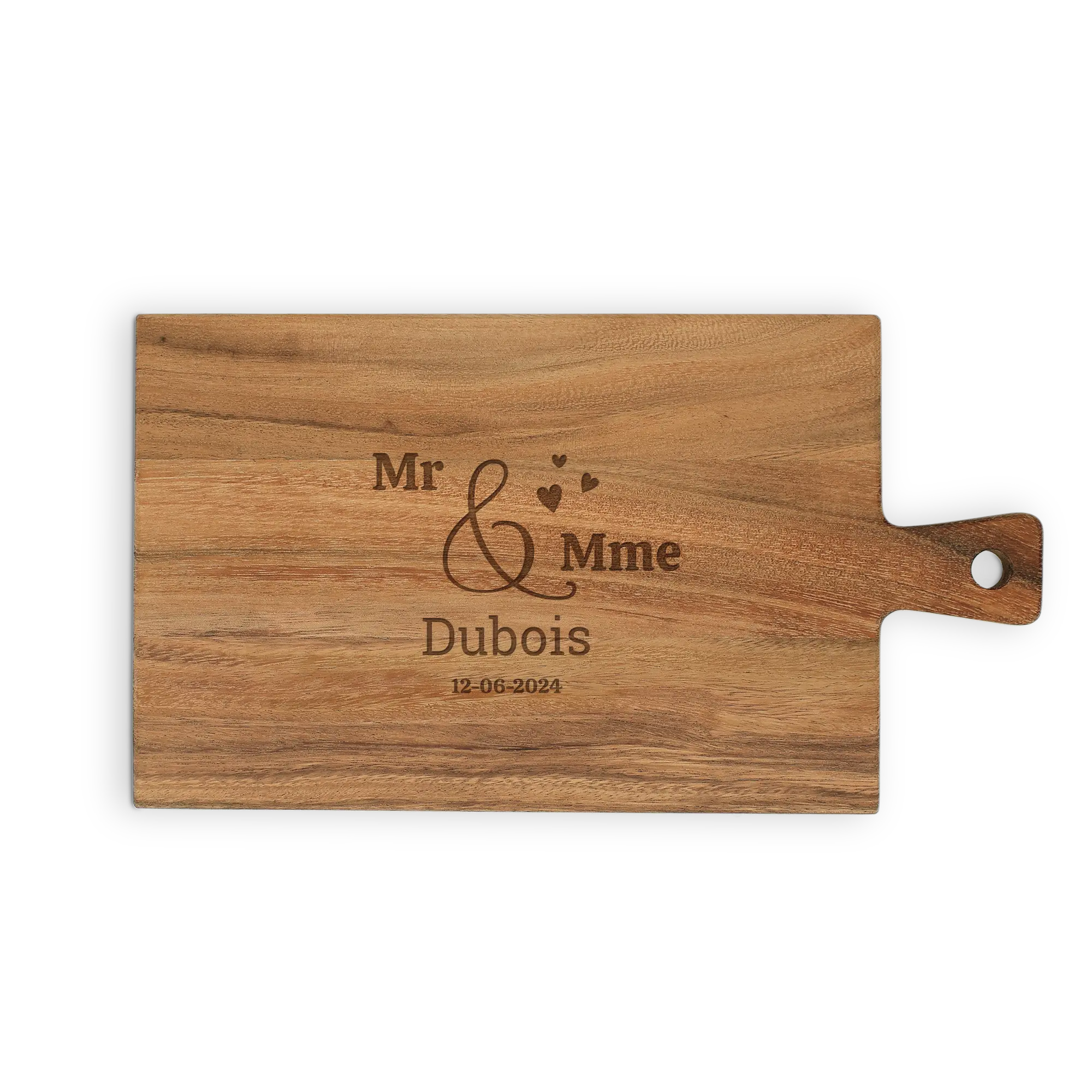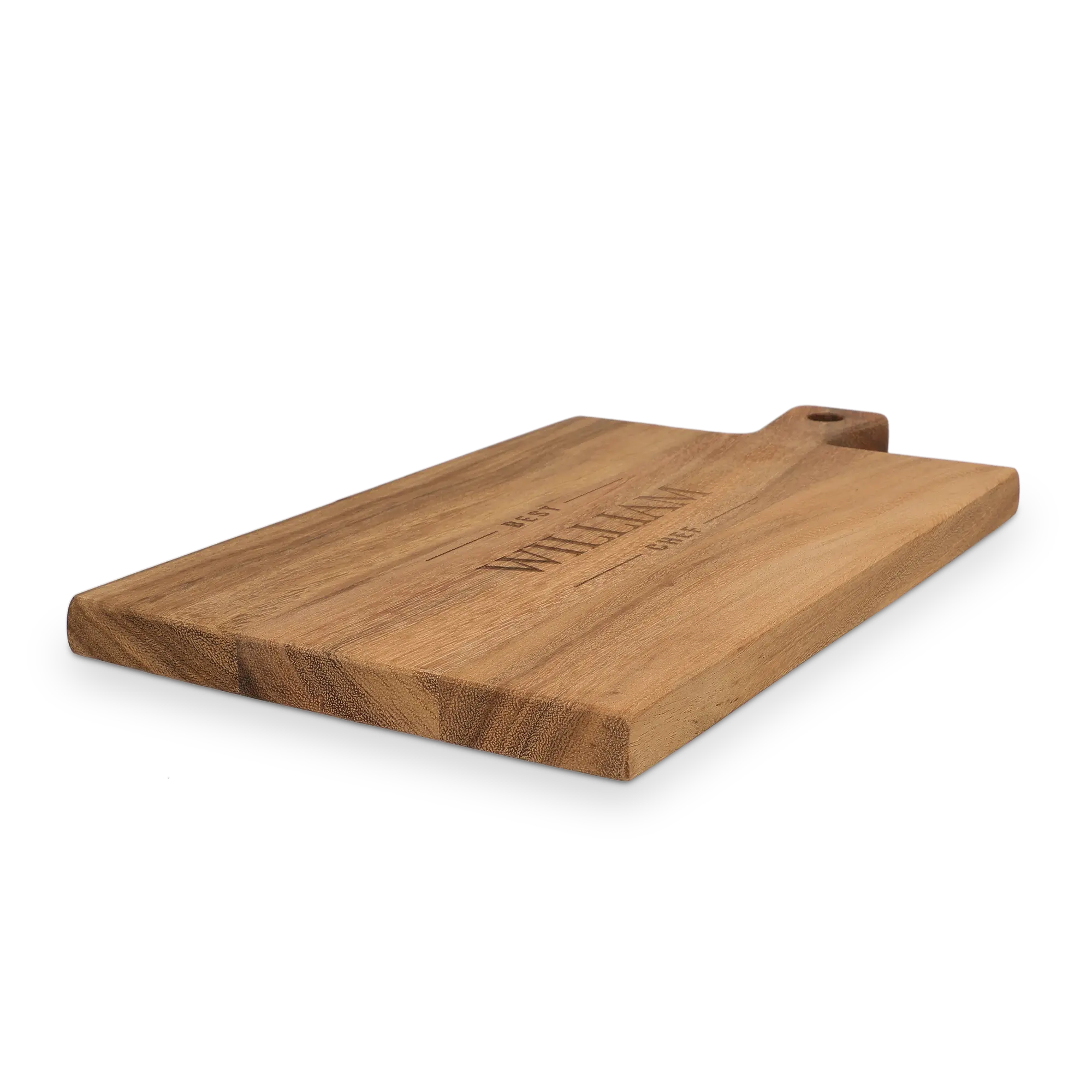Create a unique teak serving board. A personal gift with name, text and designs. In different formats!More information about the wooden serving platter:Material: high-quality solid teak Finish: Oiled and includes a leather cord Dimensions: 34,5 x 20 x 1,5 cm Weight: +/- 460 grams Personalisation: text engraving Colour engraving: wood Extra: - Not suitable for the dishwasher!- Wood is a natural product. This means that your gift may differ slightly from the example photo.Unfortunately, for technical reasons, it is not possible to process Cyrillic, Turkish or special characters.