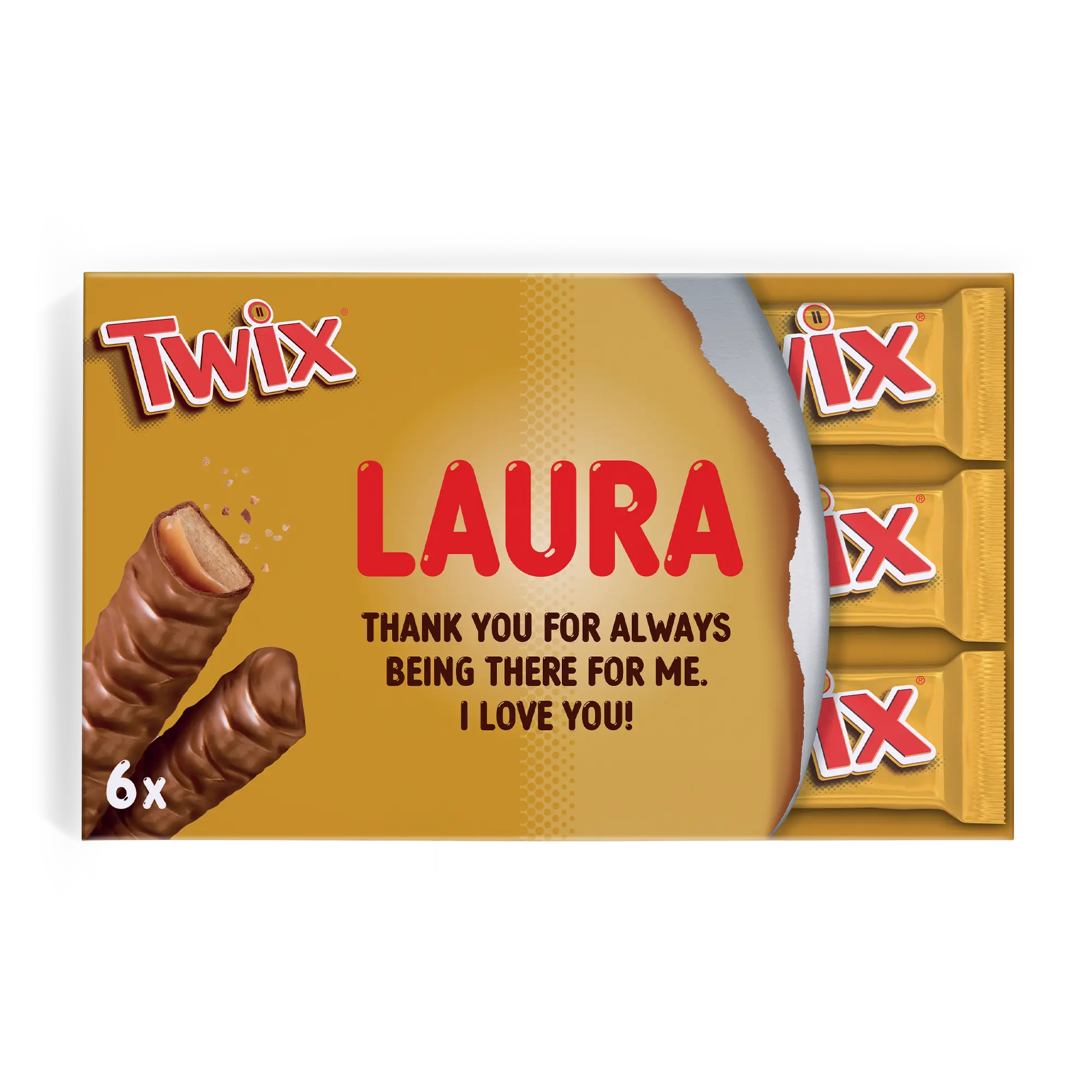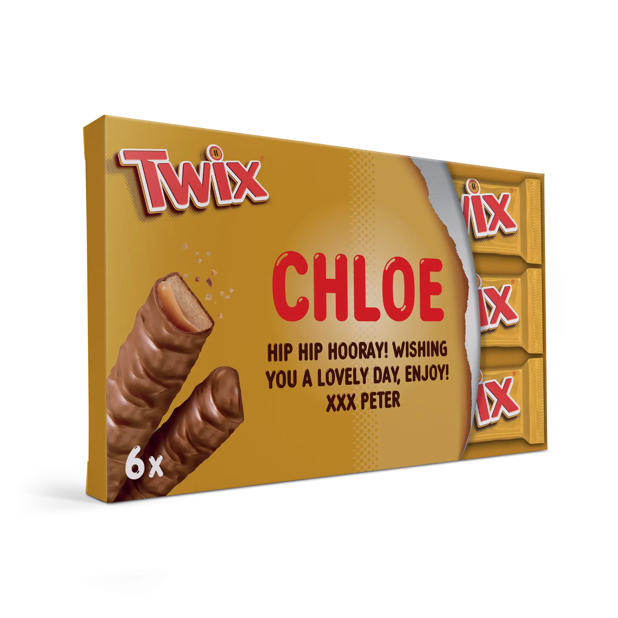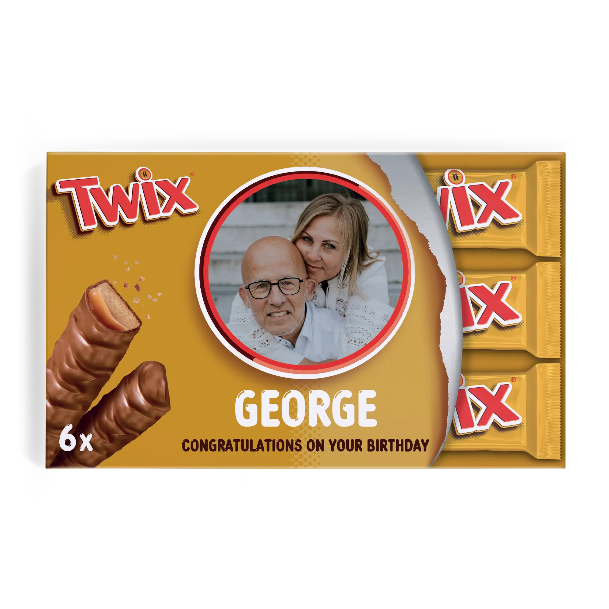 Caixa de presente Twix personalizada com a foto, nome e/ou mensagem pessoal de sua escolha - perfeita para os amantes de chocolate!