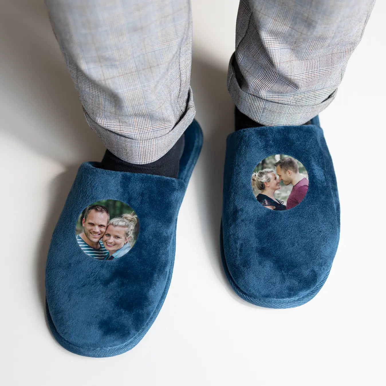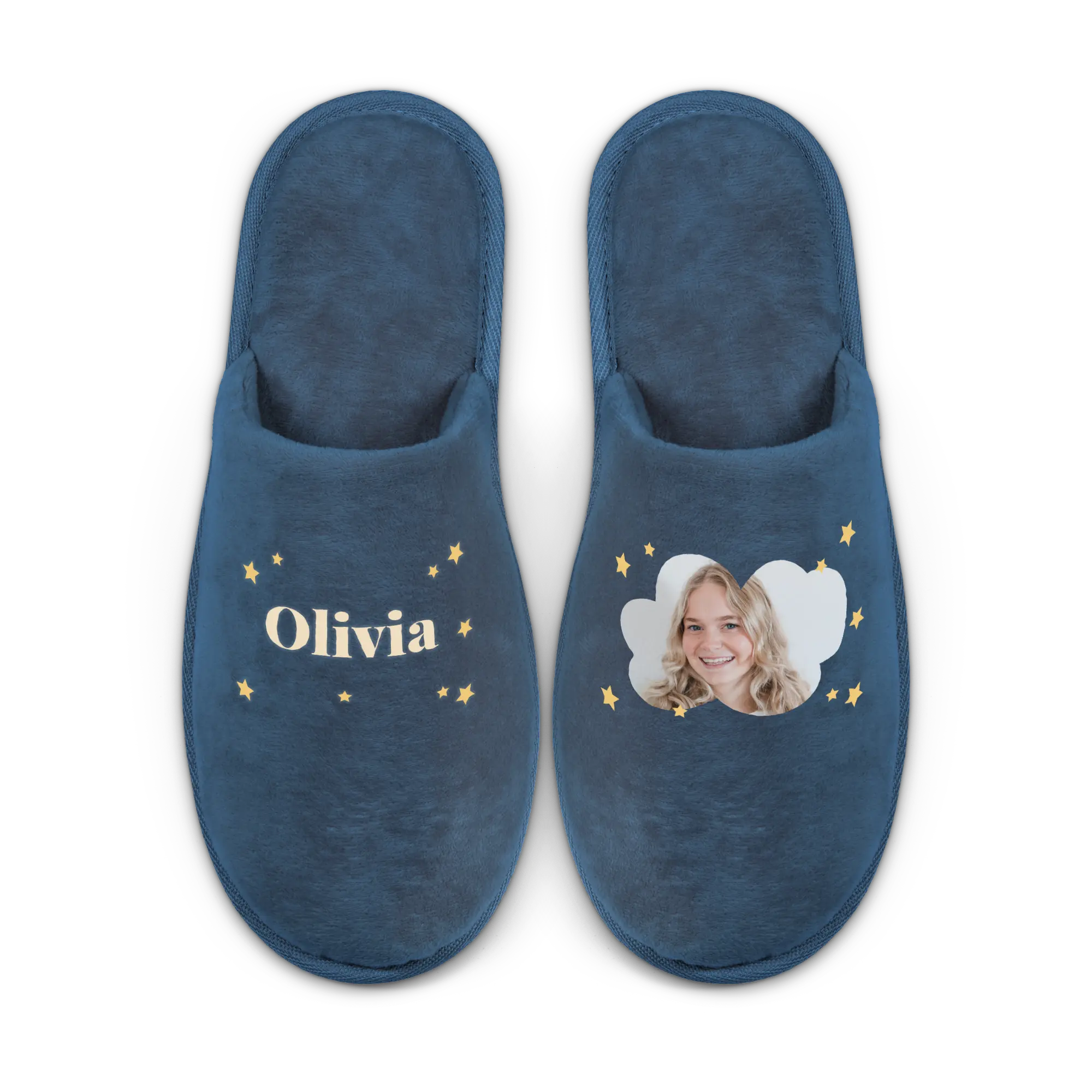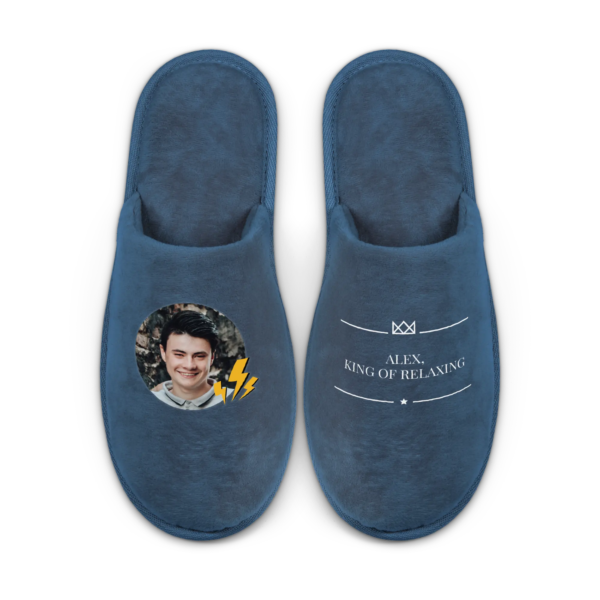 Mais informações sobre chinelos personalizados:Material: 100% poliésterTamanho: EU 39 - 42Cor: AzulEspessura: 25 mmComprimento: 27,2 cmPersonalização: com foto, nome, texto e/ou logotipoImpressão: perfeita e em cores vibrantesInformações adicionais: cada chinelo pode ser personalizado individualmente.Limpeza: remova manchas com um pano úmido.