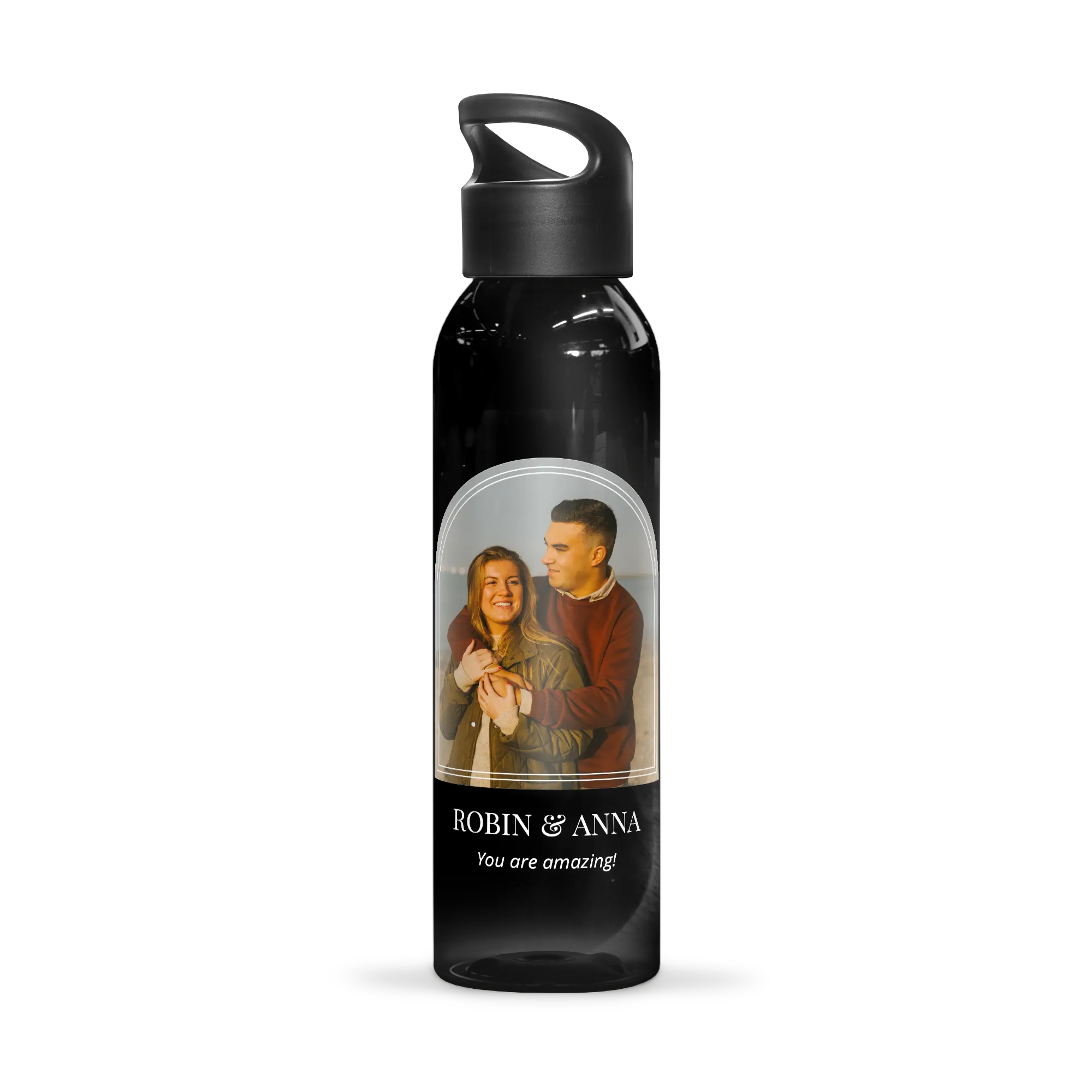 Mais informações sobre a garrafa de água:Material: Eastman Tritan (livre de BPA)Cor: preto transparenteTamanho: 25,7 x 6,7 cmCapacidade: 650mlPersonalização: com nome, texto, design ou fotoProcessamento: impressão UVEExtras: com tampa removível, lavagem à mão recomendadaA garrafa de água é livre de BPA, portanto, é completamente segura.Por motivos técnicos, não é possível adicionar fotos com fundo transparente.