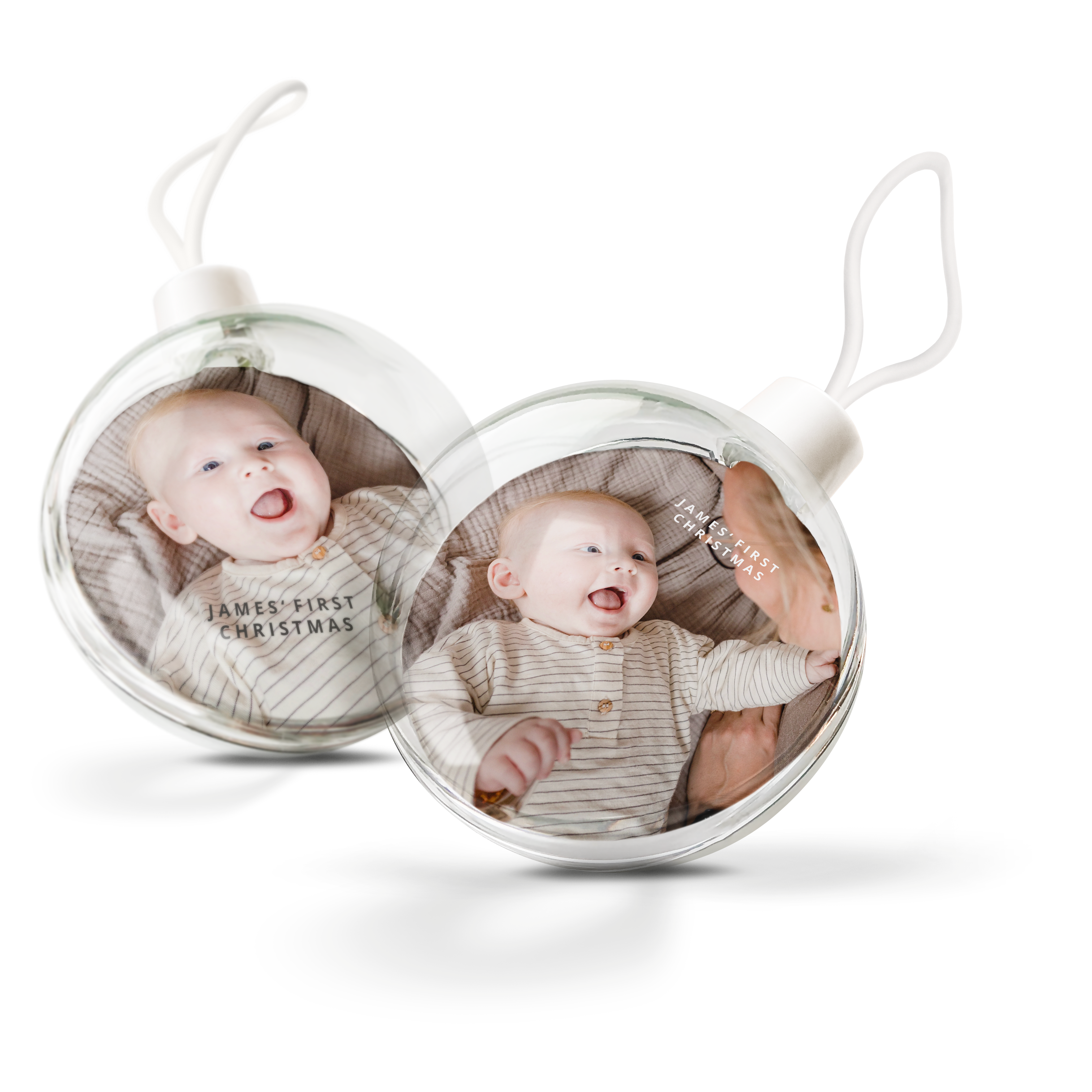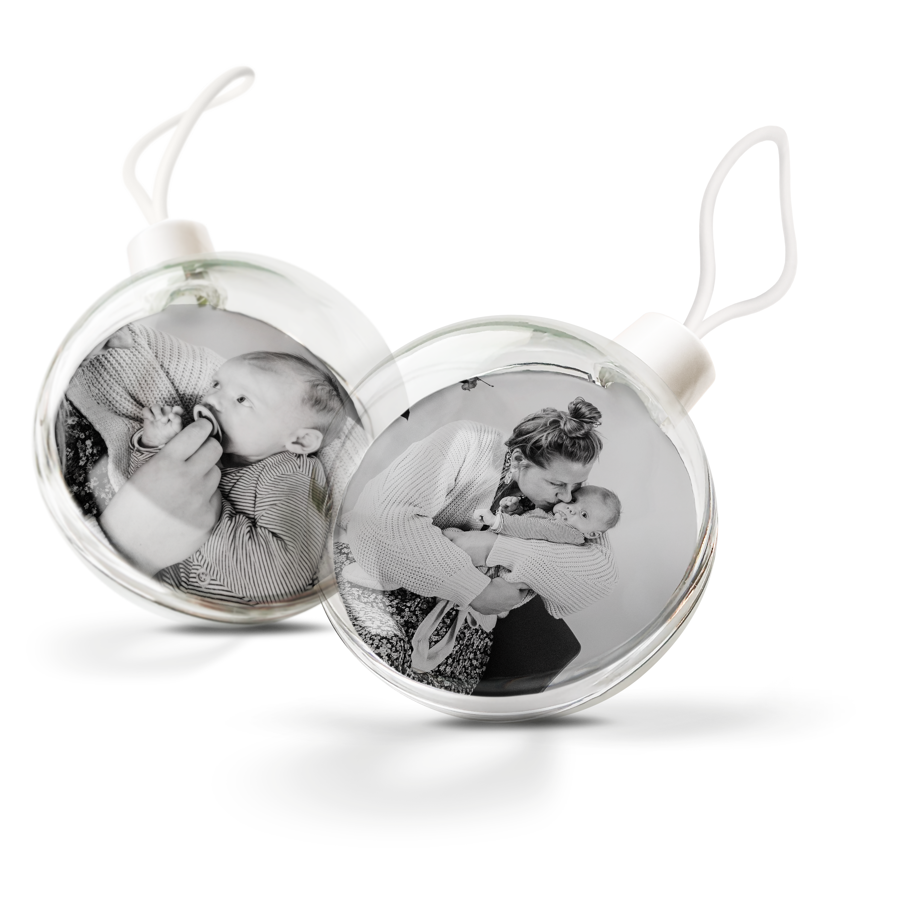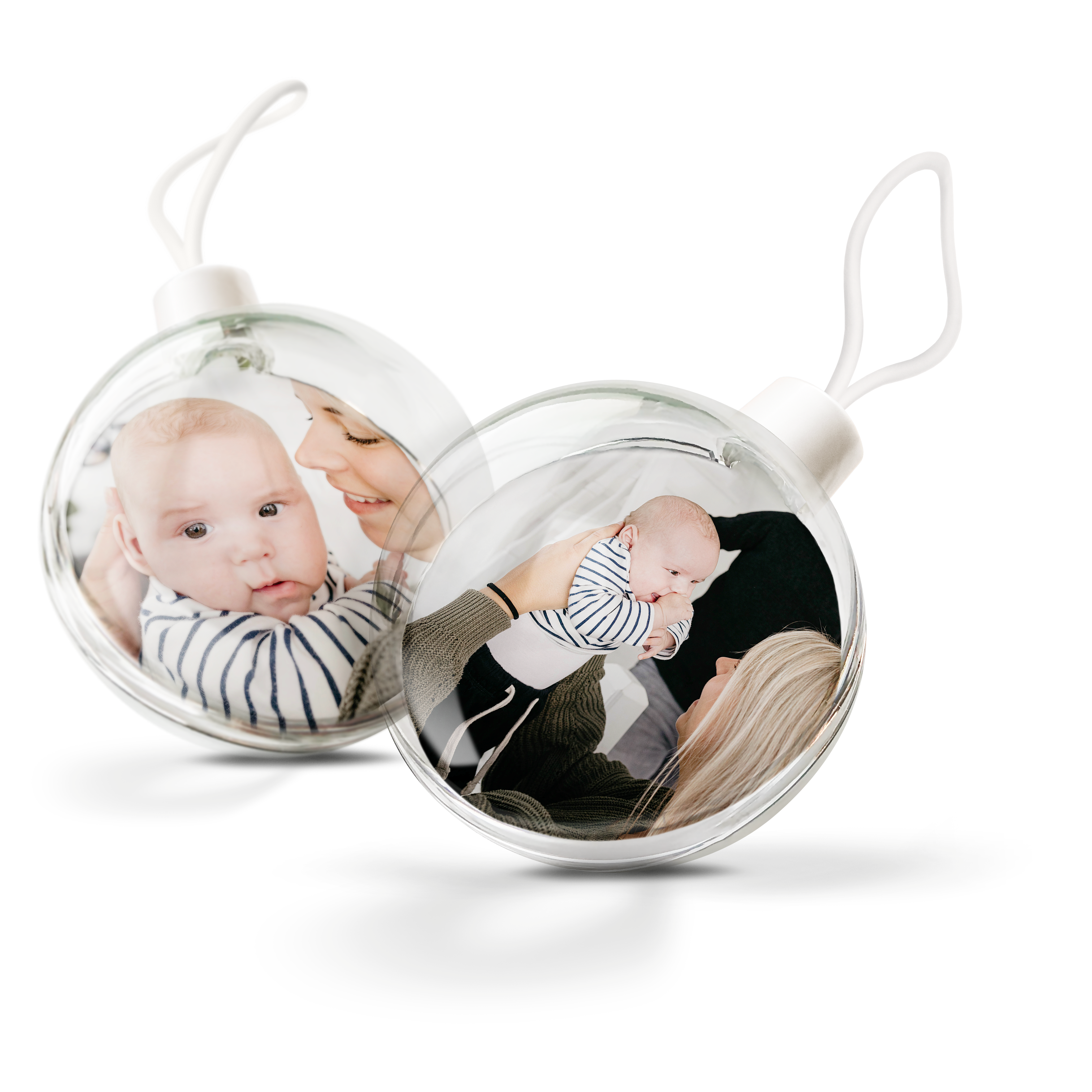 Mais informações sobre as bolas de Natal transparentes:Quantidade: conjunto de 2Tamanho: Ø 8 cmMaterial: plástico de alta qualidadeCor: transparentePersonalização: com foto e/ou textoImpressão: imagem perfeita e em cores vivasPosição: dupla face dentro da bolaCada bola pode ser personalizada individualmente.