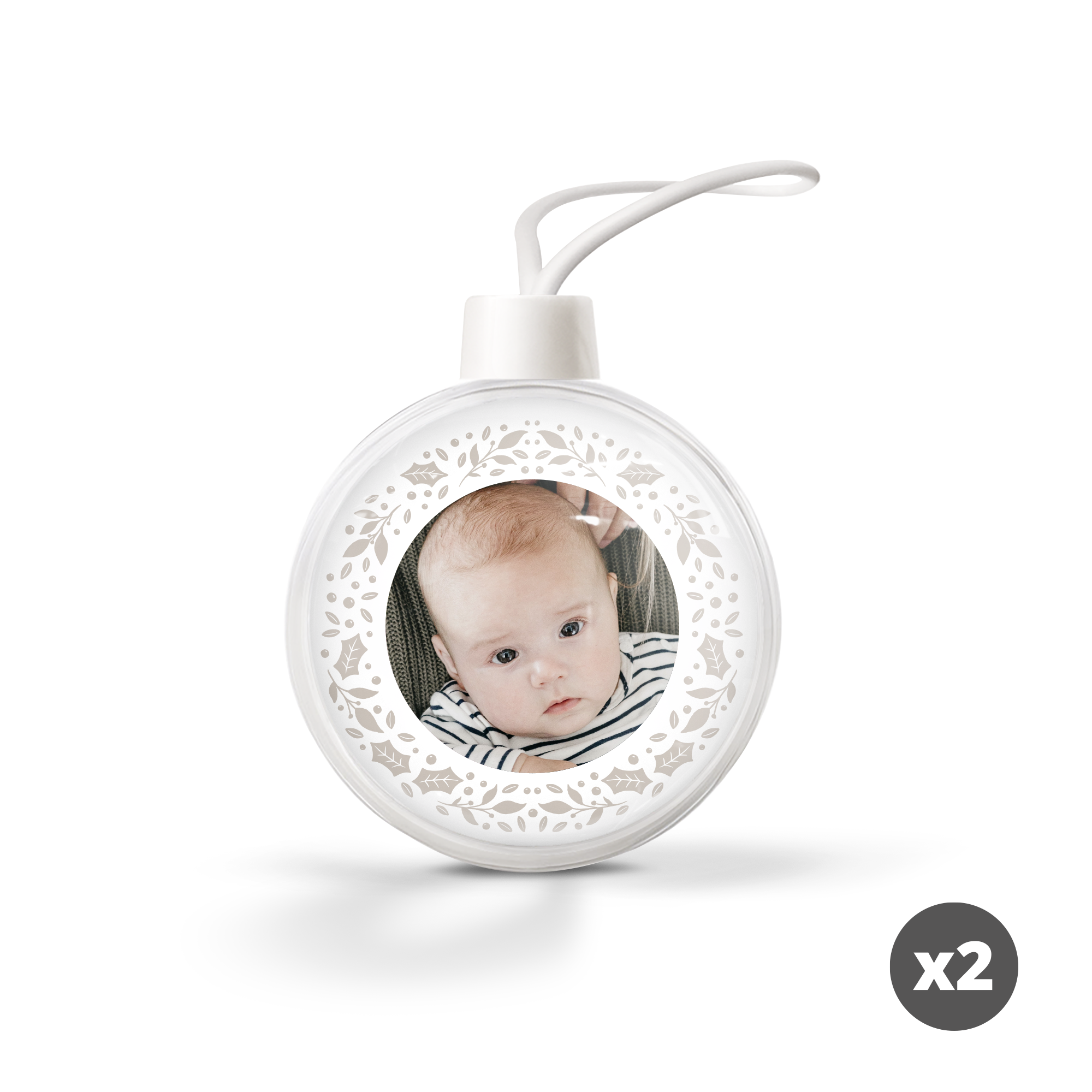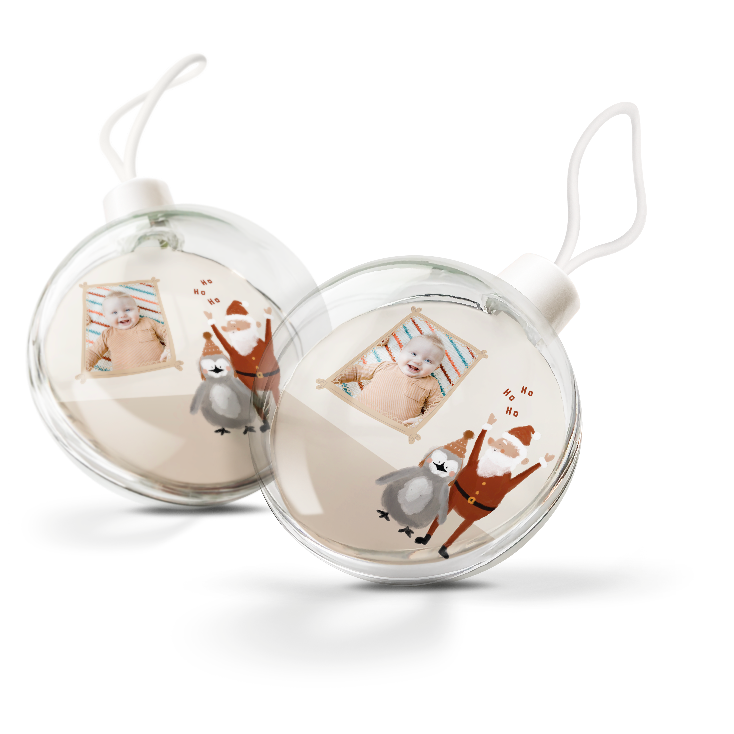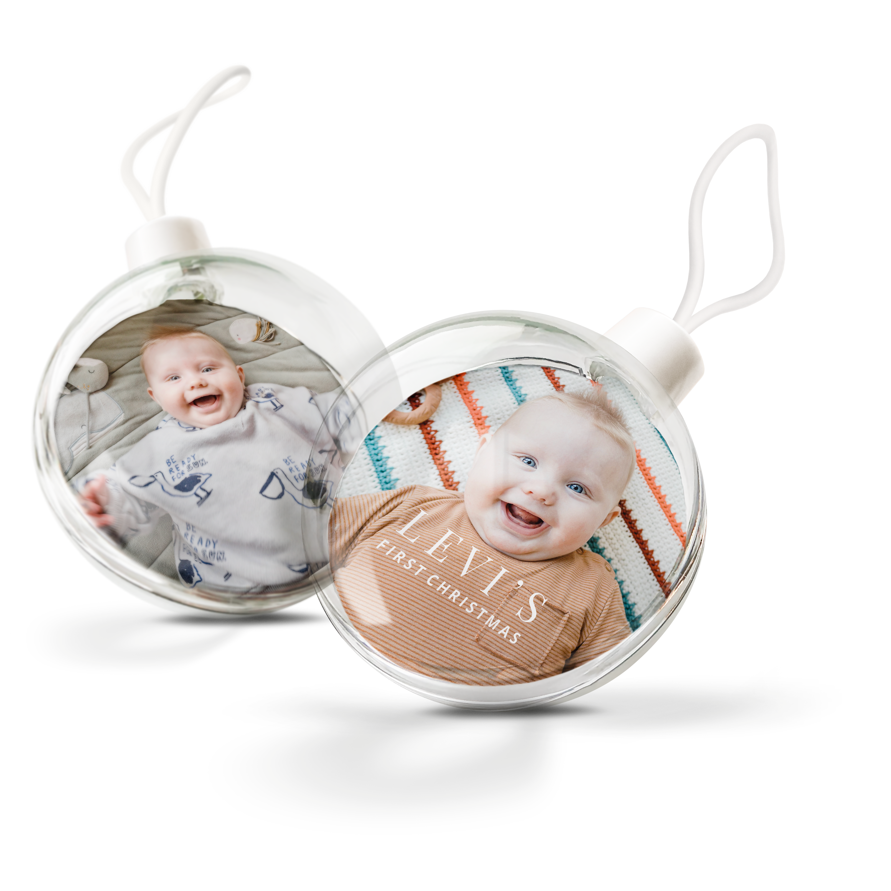 Mais informações sobre as bolas de Natal transparentes:Quantidade: conjunto de 2Tamanho: Ø 8 cmMaterial: plástico de alta qualidadeCor: transparentePersonalização: com foto e/ou textoImpressão: imagem perfeita e em cores vivasPosição: dupla face dentro da bolaCada bola pode ser personalizada individualmente.