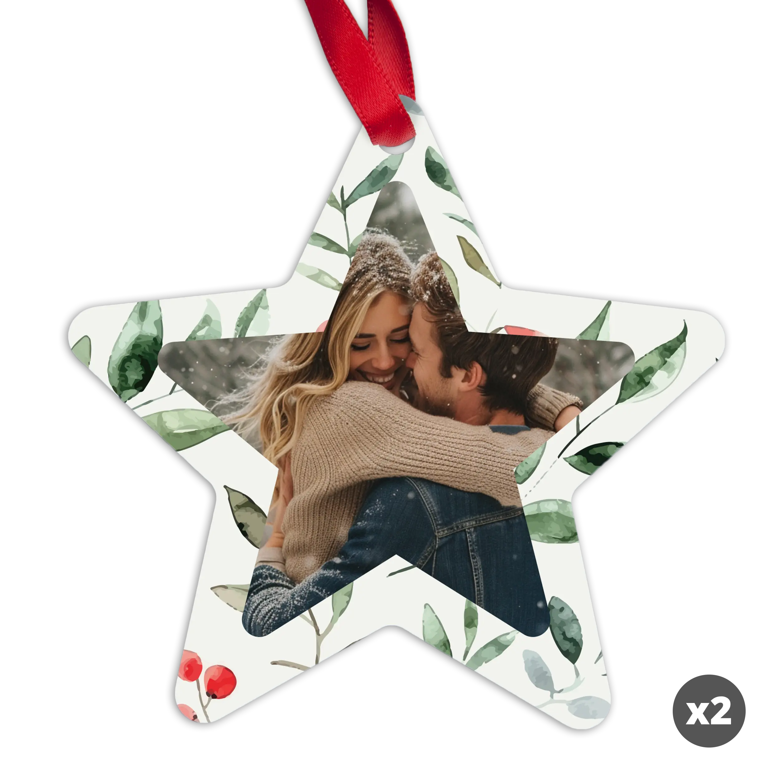 Peça um enfeite de Natal em forma de estrela com sua própria foto, logo ou texto em um design exclusivo. Decorações de Natal verdadeiramente originais!