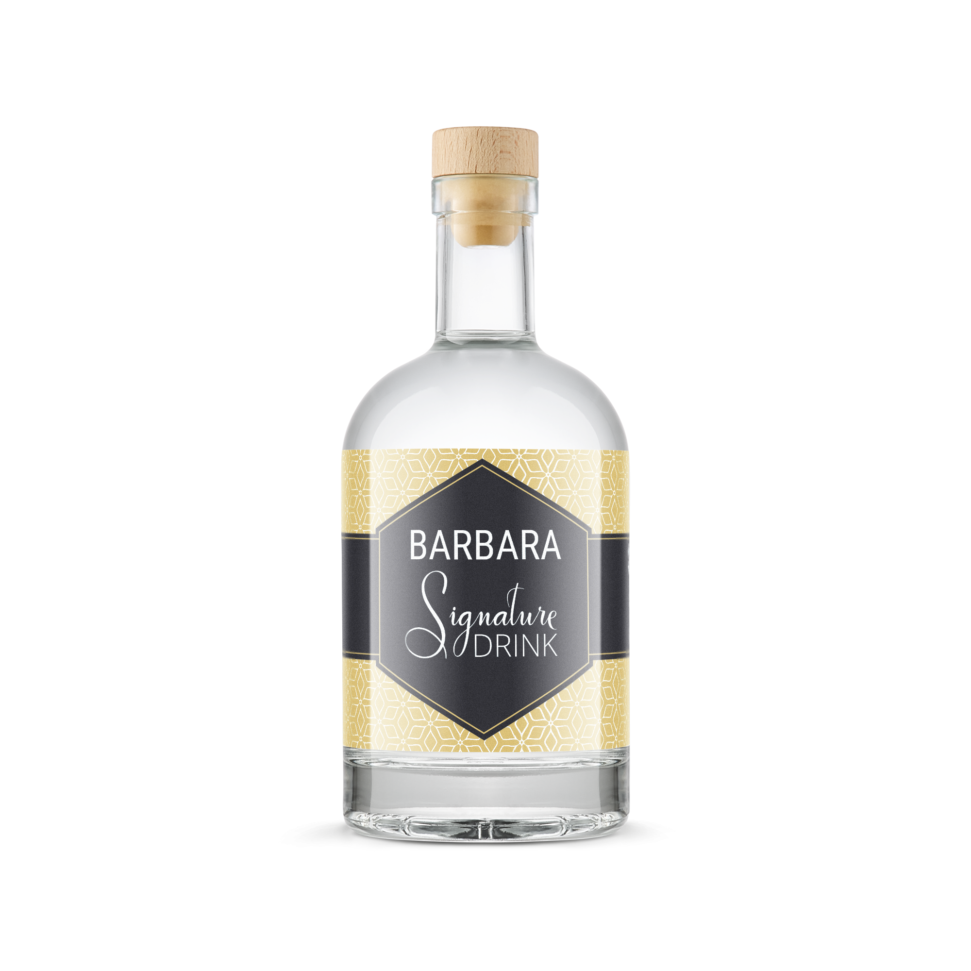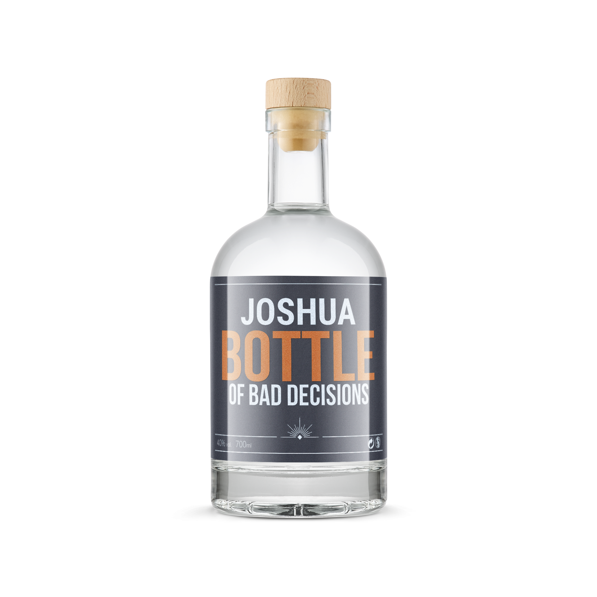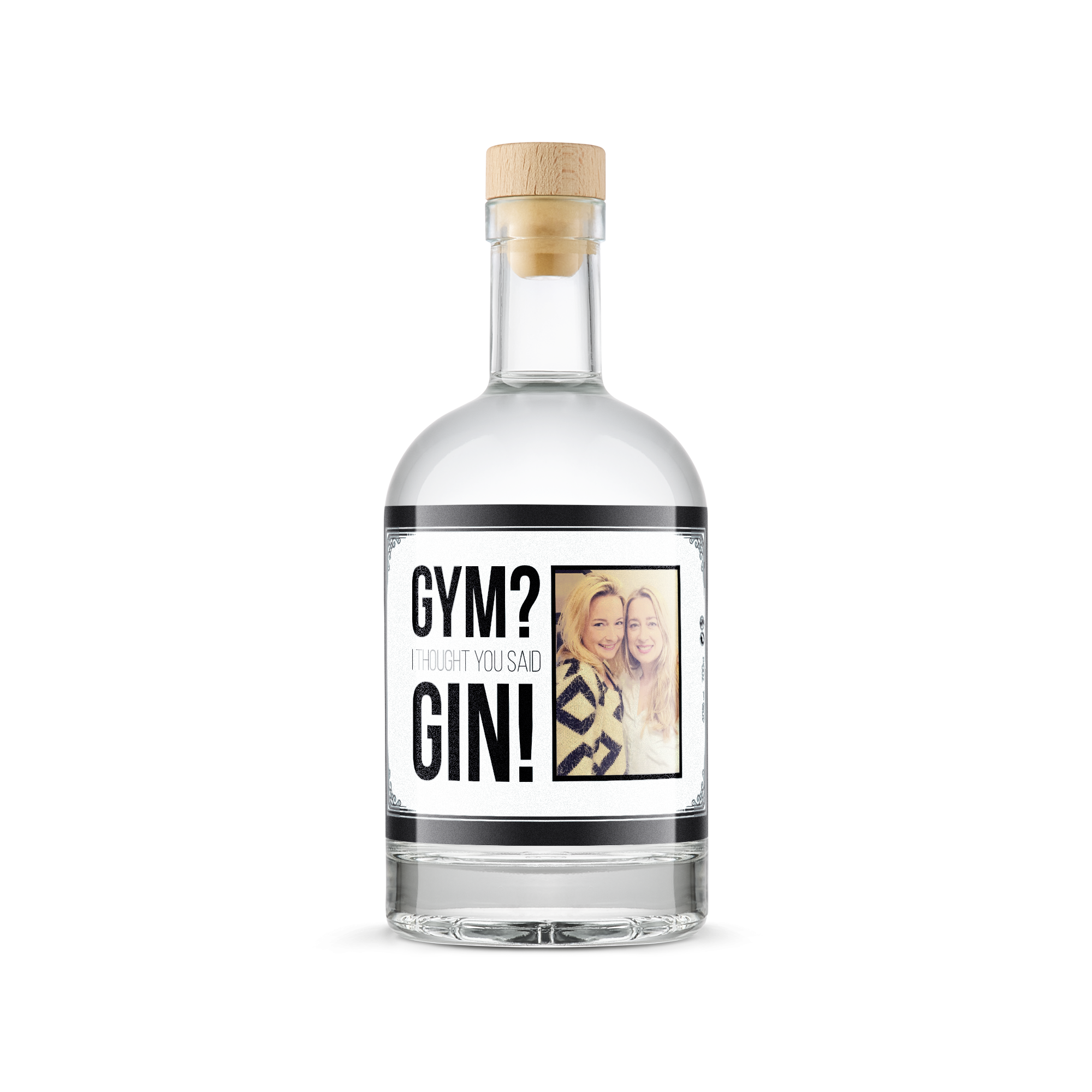 Gin da marca própria YourSurprise com rótulo impresso. Seu design pessoal com foto, nome, logotipo ou colagem. Para verdadeiros amantes de gin!