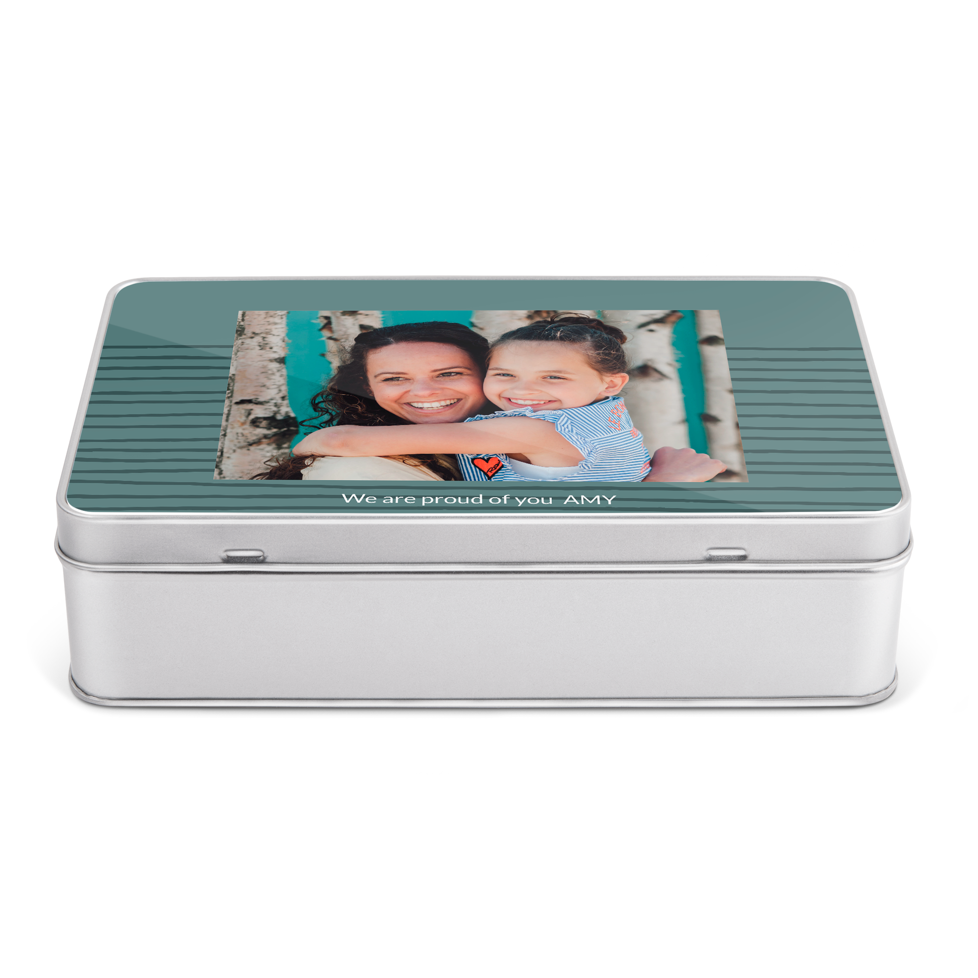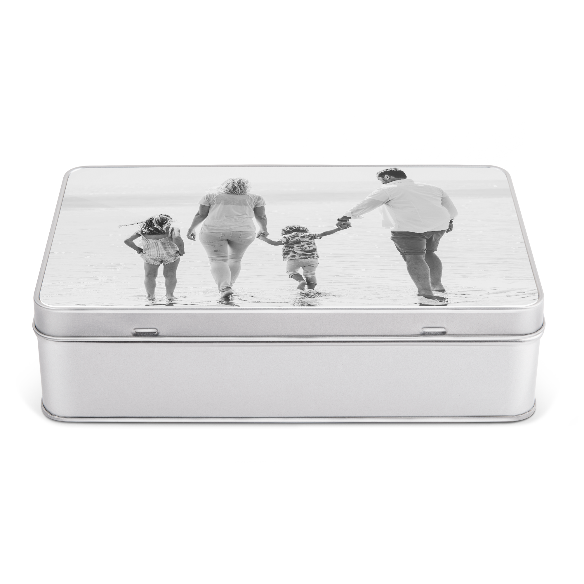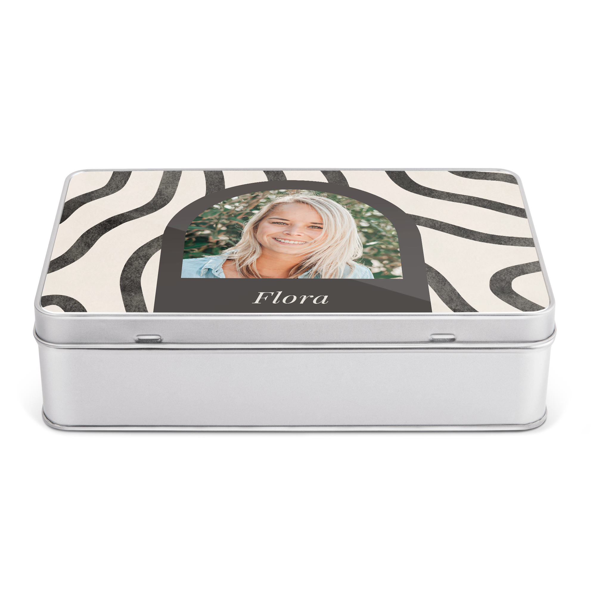 Mais informações sobre a lata de presente:Formato: retangularMaterial: lataDimensões: 20 x 12,5 x 5 cmConteúdo: Oreo coberto & Oreo coberto brancoPeso: 170 grPersonalização: foto e/ou texto na placa de alumínio na tampaExtra: recomendação de lavagem à mãoBiscoitos Oreo cobertos com chocolate ao leite:Ingredientes: Açúcar, farinha de TRIGO, óleo de palma, gordura de karité, cacau em pó desnatado 4,5%, óleo de canola, LEITE em pó desnatado, AMIDO DE TRIGO, lactose (do LEITE), xarope de glicose-frutose, emulsificantes (lecitina de SOJA, E492, lecitina de girassol, E476), carbonato de amônio (carbonatos de potássio, carbonatos de sódio), sal, aromatizantes.Alérgenos: contém leite, soja, trigo, grãos que contêm glúten. Biscoitos de cacau (38%) com recheio sabor baunilha (19%), cobertos com uma cobertura sabor chocolate ao leite (43%).Biscoitos Oreo cobertos com chocolate branco:Ingredientes: Açúcar, farinha de TRIGO, óleo de palma, gordura de karité, óleo de canola, leite em pó desnatado, cacau em pó desnatado 2%, AMIDO DE TRIGO, lactose (do LEITE), soro de leite em pó (do LEITE), xarope de glicose-frutose, gordura do LEITE, emulsificantes (lecitina de SOJA), lecitina de girassol, E492, agentes de fermentação (carbonatos de potássio, carbonatos de amônio, carbonatos de sódio), sal, aromatizantes. Biscoitos de cacau (38%) com recheio sabor baunilha (19%), cobertos com uma cobertura (43%) sabor chocolate branco.Alérgenos: contém leite, soja, trigo, grãos que contêm glúten.Infelizmente, em temperaturas tropicais acima de 25 graus, não podemos garantir que você receberá seu presente de chocolate em perfeitas condições. Alguma dúvida? Entre em contato com nosso atendimento ao cliente.Infelizmente, por razões técnicas, não é possível imprimir números, caracteres cirílicos, turcos ou caracteres especiais.