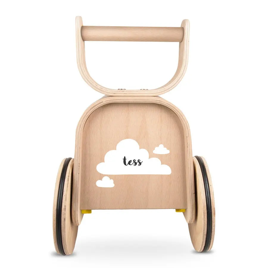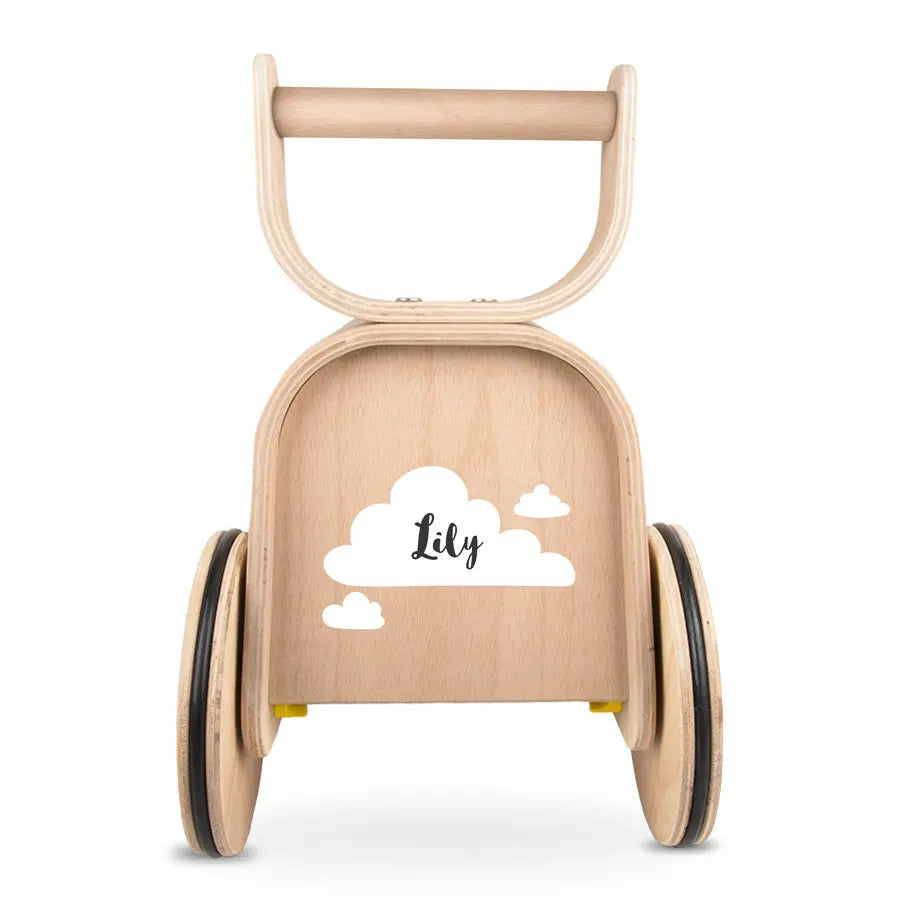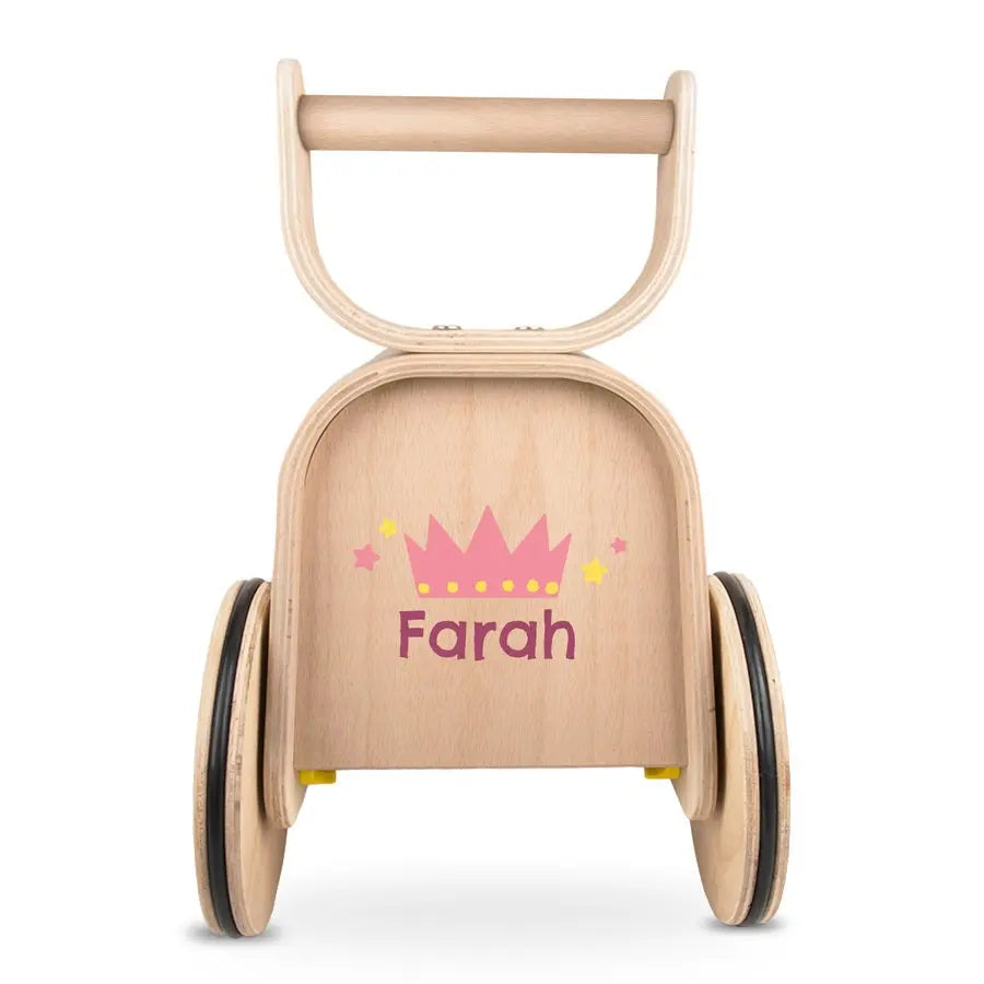 Aprender a andar é ainda mais divertido com este carro de empurrar de madeira. Pode ser usado como um brinquedo de empurrar, carro de corrida e armazenamento de brinquedos!