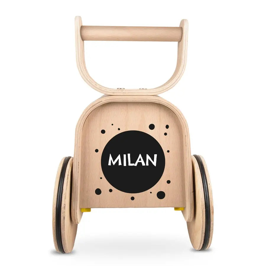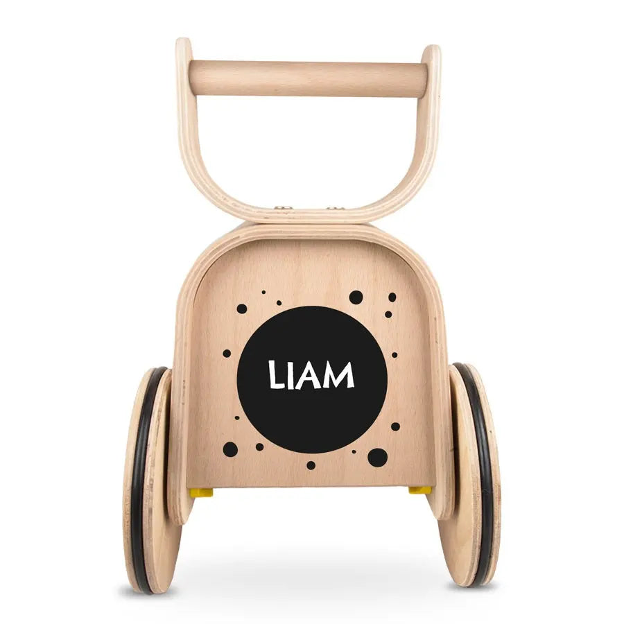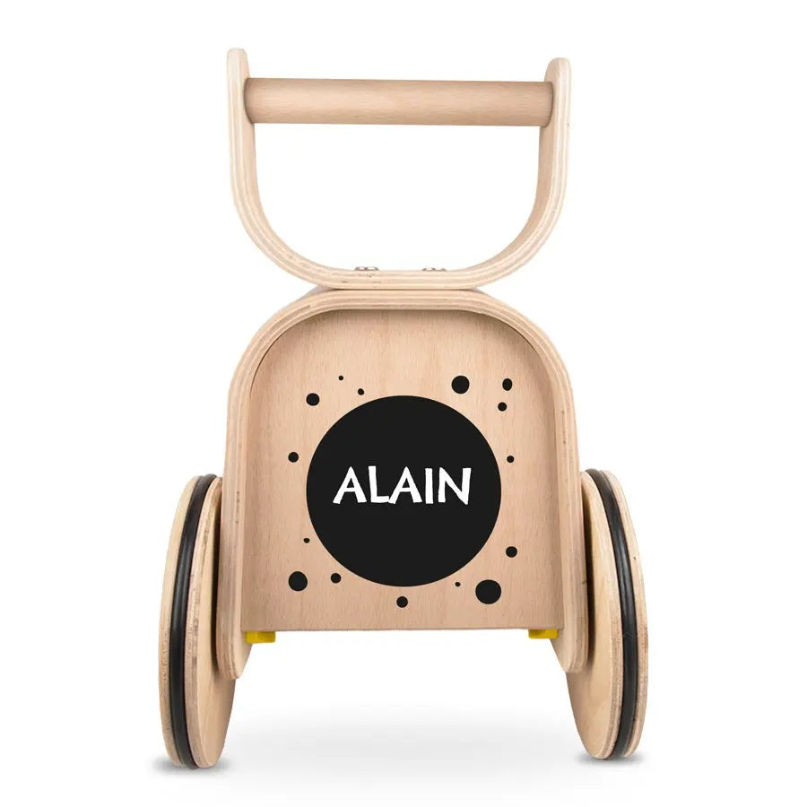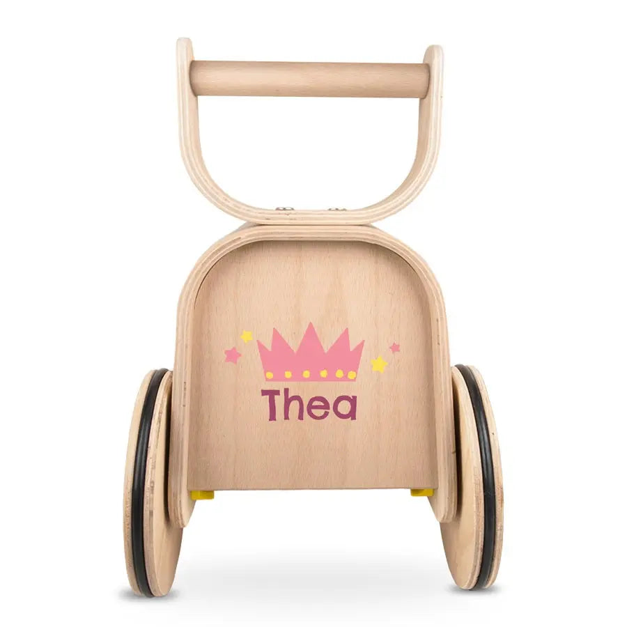 Mais informações sobre o brinquedo de empurrar de madeira impresso:Dimensões: 49 x 21 cmAltura do assento: 21 cmPeso: ± 4 kgTipo de madeira: multiplex de bétula super resistente e sem farpasDetalhes: madeira de bétula de alta qualidadeIdade: a partir de 10 mesesTipo de personalização: com nomeLocalização da personalização: na frenteMétodo de personalização: vinil laminado de alta qualidadeExtra: 3 brinquedos em 1; andar, empurrar e armazenar!Bom saber:As rodas possuem um revestimento de borracha, o que significa que seu pequeno pode correr dentro de casa sem muito barulho. Você também pode ajustar a velocidade máxima usando clipes práticos incluídos para esse fim.