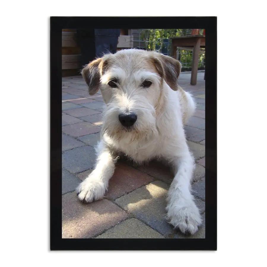 Mais informações sobre as molduras de vidro para fotos com uma foto: Material: vidro premium com moldura preta Dimensões: 21 x 30 cm Espessura: 7 mm Impressão: impressão fotográfica em cores perfeitas Sistema de montagem: bloco de montagem sintético intercambiável Extra: você pode limpar facilmente sua moldura de fotos com um pano seco e limpador de vidro
