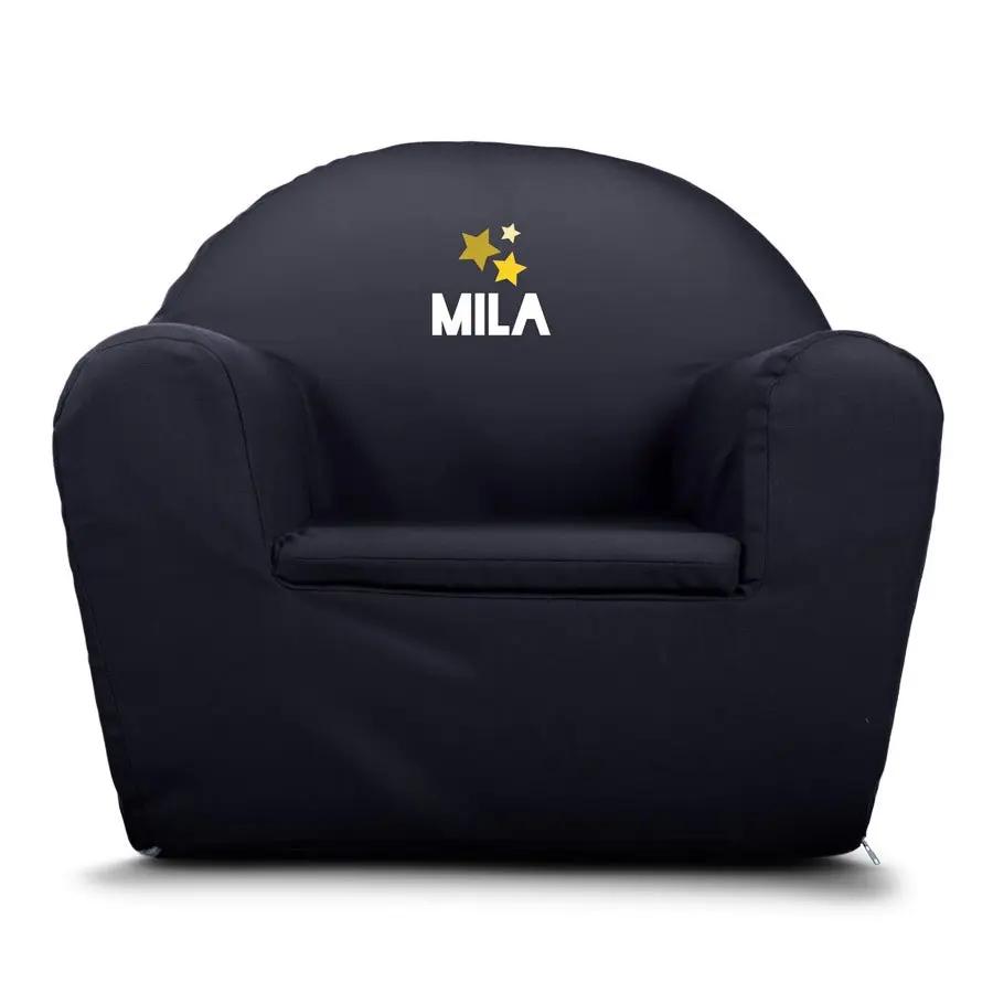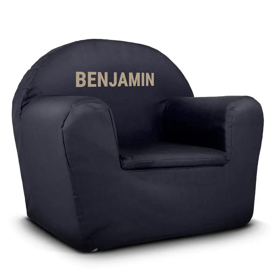 Mais informações sobre a cadeira infantil personalizada: Cor: azulDimensões: 52 x 35 x 46 cm / 20,5” x 13,8” x 18,1”Altura do assento: 18 cm / 7,1”Largura do assento: 28 cm / 11”Material: 100% algodão, 230 gr/m2Recheio: espuma macia e durávelIdade: 1 - 5 anosPersonalização: com nome ou textoInstruções de lavagem: Limpe a cadeira com um pano úmido ou remova a capa e lave a 30°C. Não vire a capa do avesso.