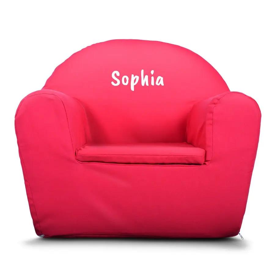 Mais informações sobre a cadeira infantil personalizada: Cor: rosaDimensões: 52 x 35 x 46 cm / 20,5” x 13,8” x 18,1”Altura do assento: 18 cm / 7,1”Largura do assento: 28 cm / 11”Material: 100% algodão, 230 gr/m2Recheio: espuma macia e durávelIdade: 1 - 5 anosPersonalização: com nome ou textoInstruções de lavagem: Limpe a cadeira com um pano úmido ou remova a capa e lave a 30°C. Não vire a capa do avesso.