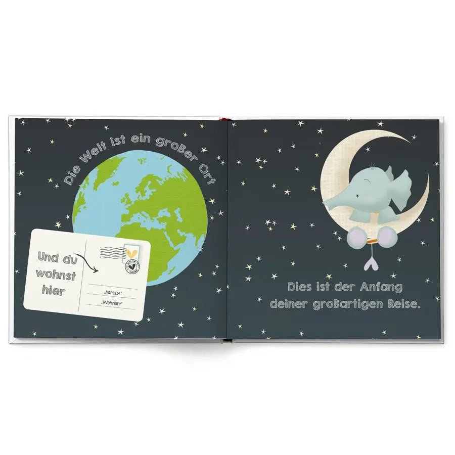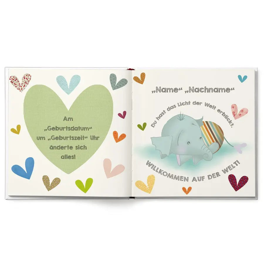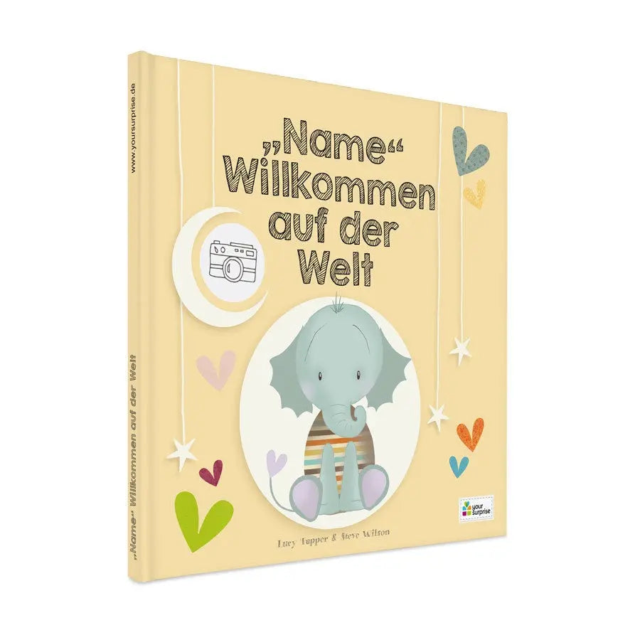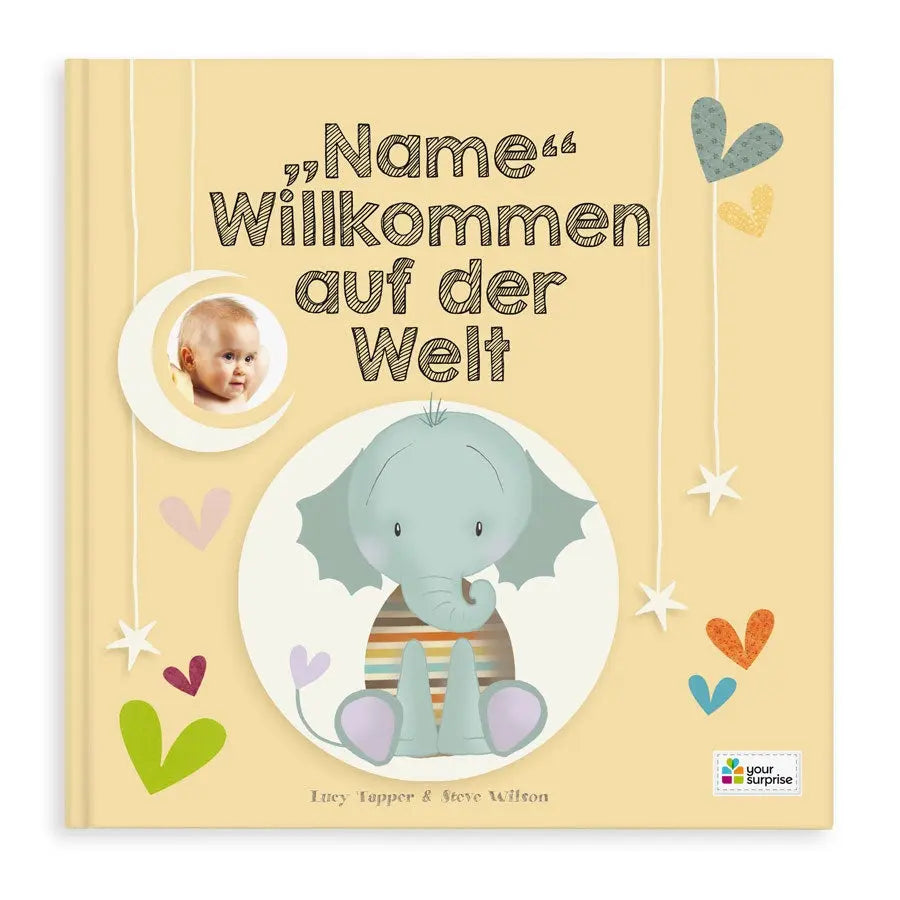 Procurando um presente para um nascimento? Então o livro do bebê "Bem-vindo ao Mundo" é perfeito. Personalizado com nome e foto.