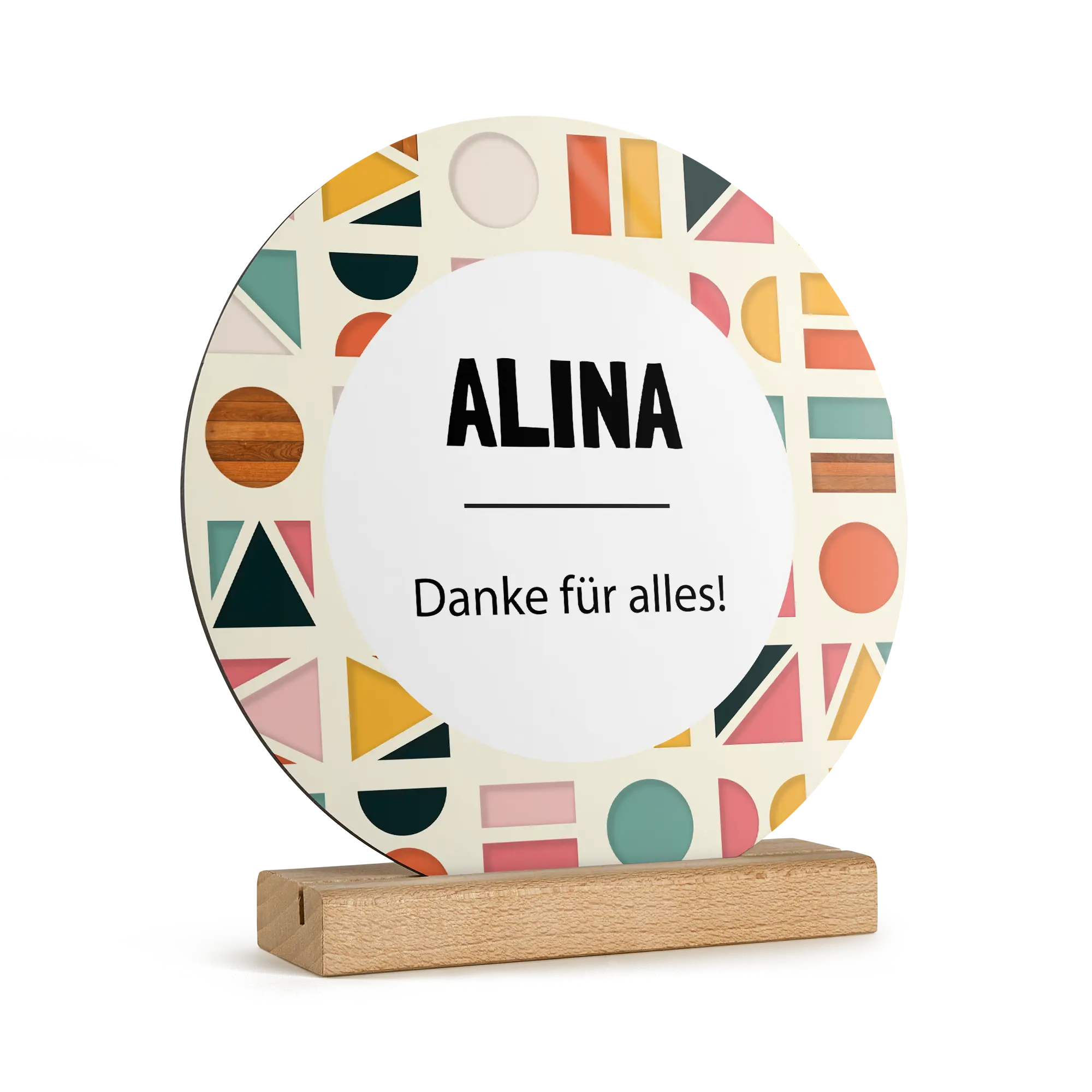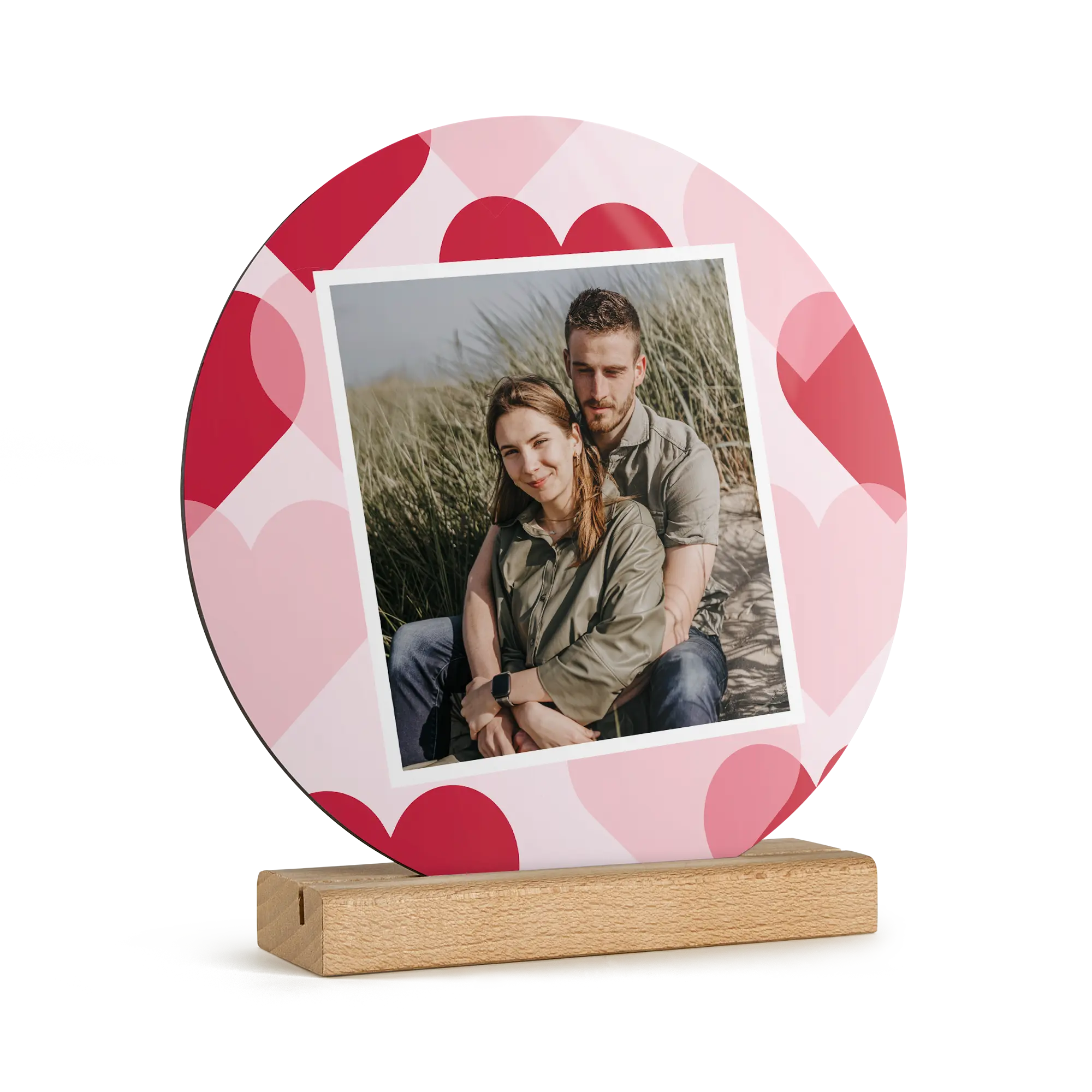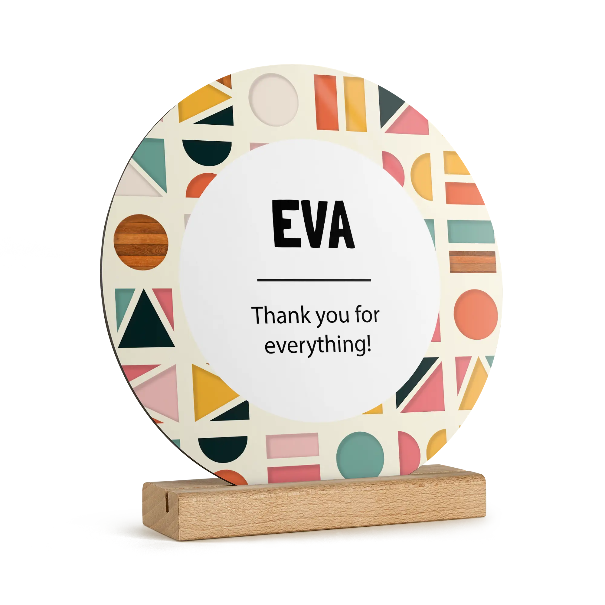 Mais informações sobre o painel de madeira:Formato: quadradoMaterial: Madeira compensada de alta qualidadeAcabamento: Revestimento brilhanteDimensões do painel: 23 x 20 x 20 x 0,3 cmDimensões do suporte: 15 x 5 x 2 x 2 cmPersonalização: com foto, texto e/ou logoImpressão: em cores claras e nítidas