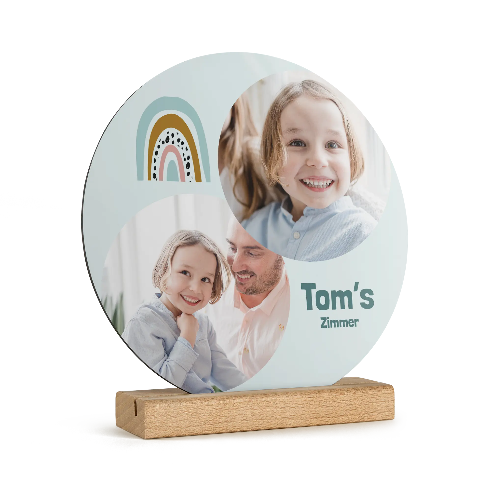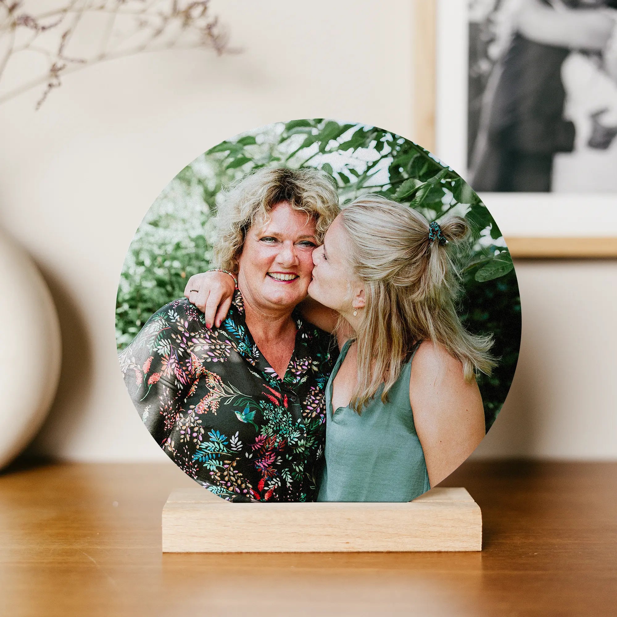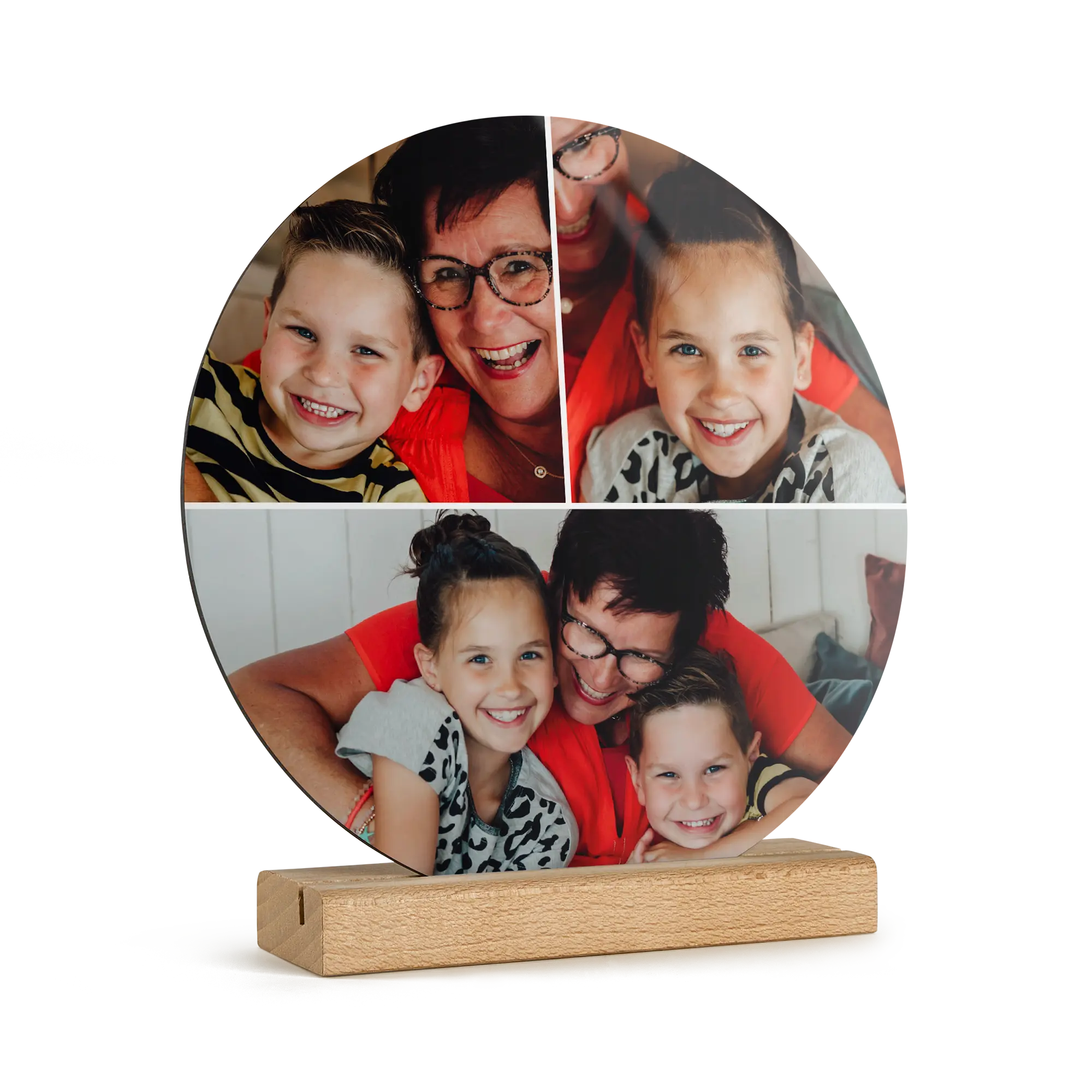 Mais informações sobre o painel de madeira:Formato: quadradoMaterial: Madeira compensada de alta qualidadeAcabamento: Revestimento brilhanteDimensões do painel: 23 x 20 x 20 x 0,3 cmDimensões do suporte: 15 x 5 x 2 x 2 cmPersonalização: com foto, texto e/ou logoImpressão: em cores claras e nítidas