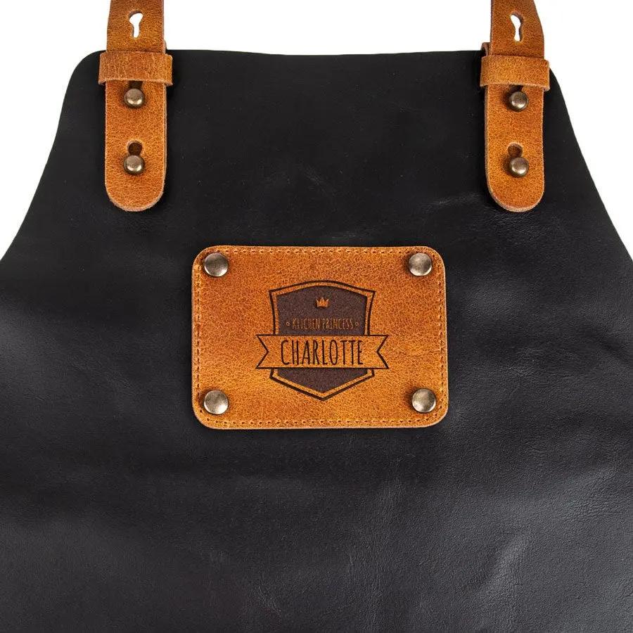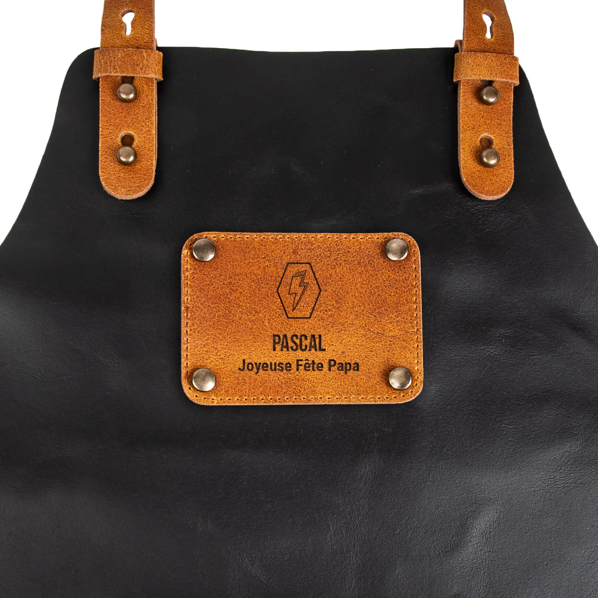 Avental de couro, gravado com um design especial e nome. O avental de couro personalizado é o presente ideal para todo aspirante a chef!