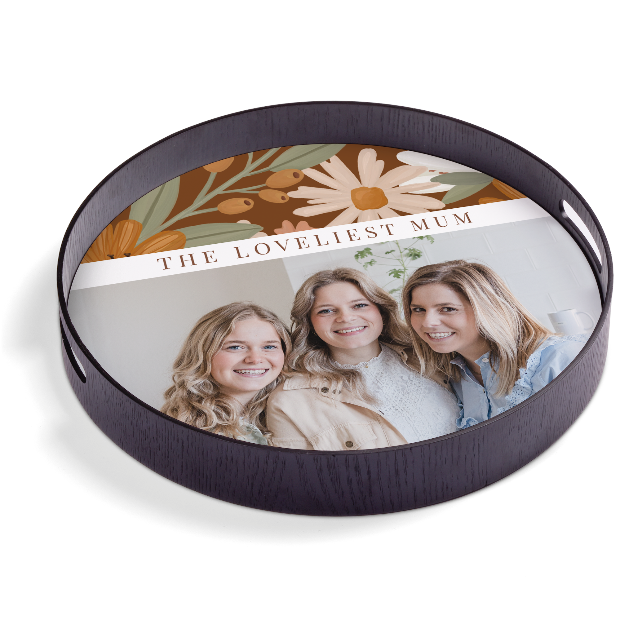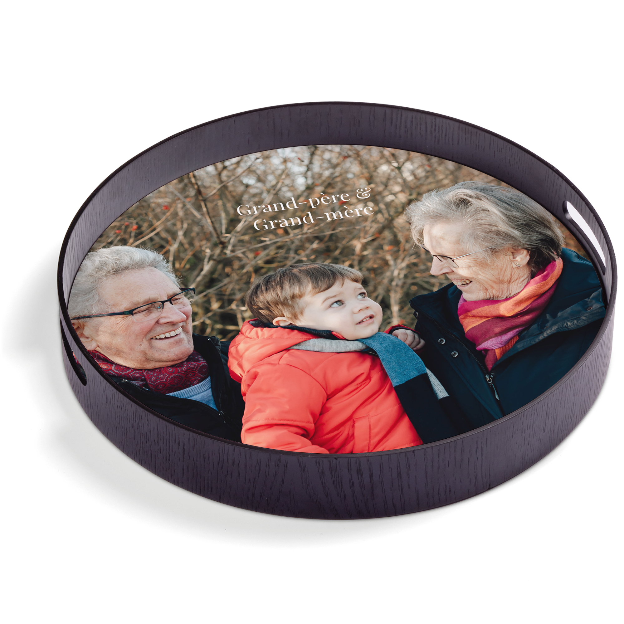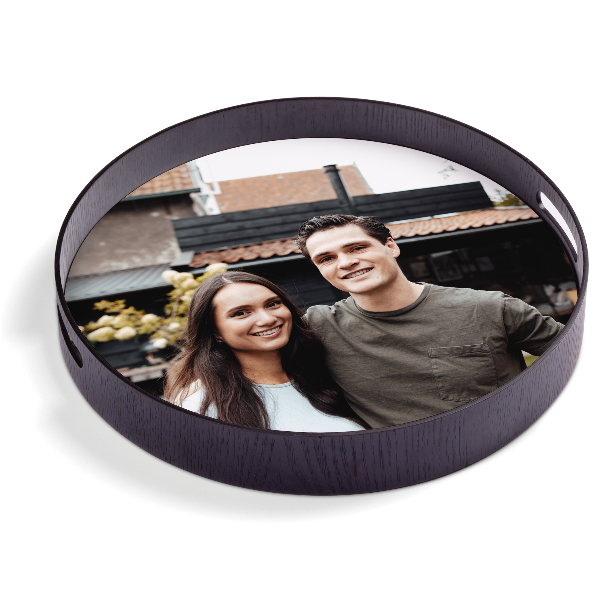 Mais informações sobre a bandeja de servir personalizada:Forma: redondaCor: pretaMaterial: moldura de madeira deluxe (madeira de pinho) com base de hardboard de alta qualidadeAcabamento: brilhanteDimensões: 40 x 40 x 6 cmPersonalização: com foto, nome, logotipo ou colagemImpressão: perfeita e em cores vibrantes