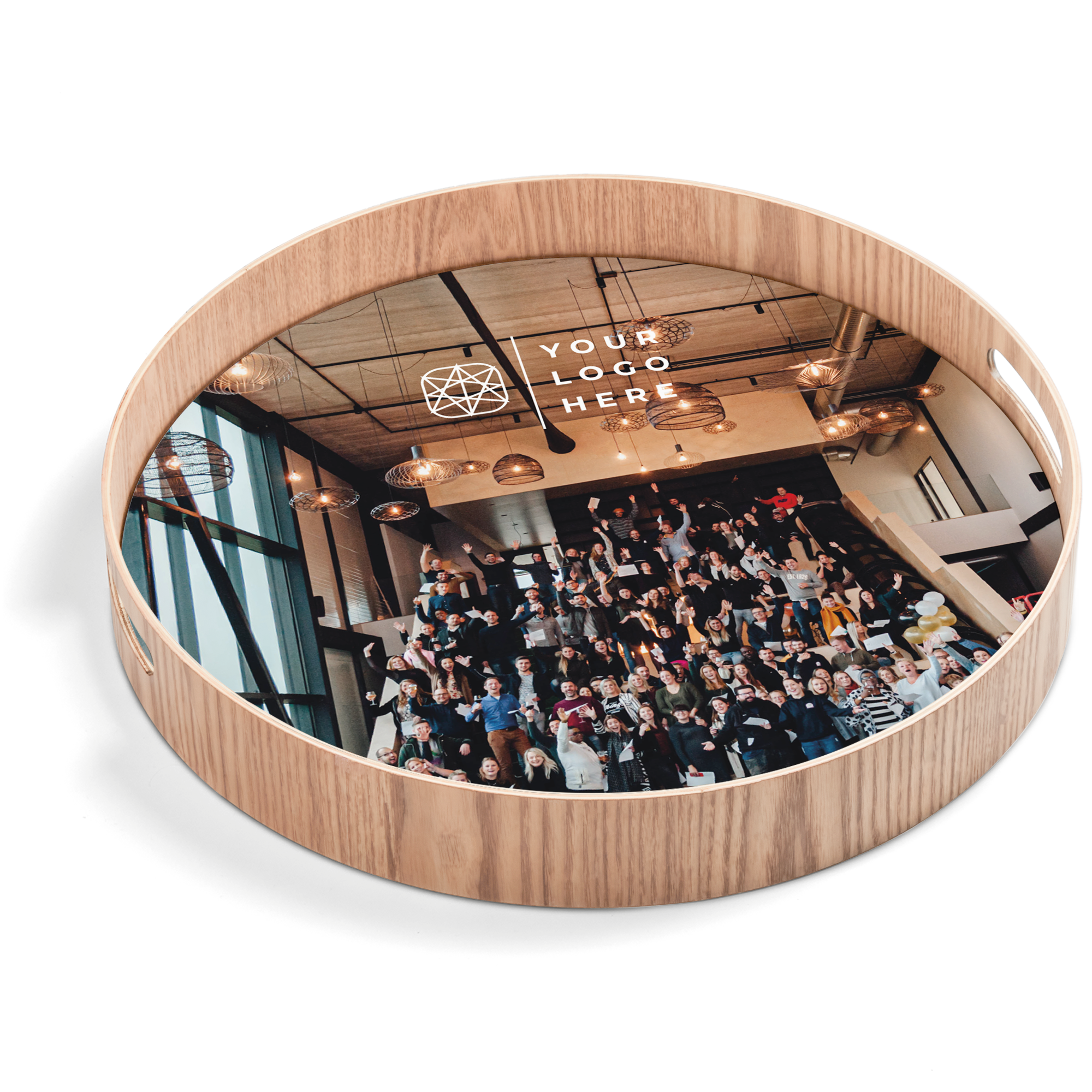 Mais informações sobre a bandeja de servir personalizada:Forma: redondaCor: madeiraMaterial: moldura de madeira deluxe (madeira de pinho) com base de hardboard de alta qualidadeAcabamento: brilhanteDimensões: 40 x 40 x 6 cmPersonalização: com foto, nome, logotipo ou colagemImpressão: perfeita e em cores vibrantes