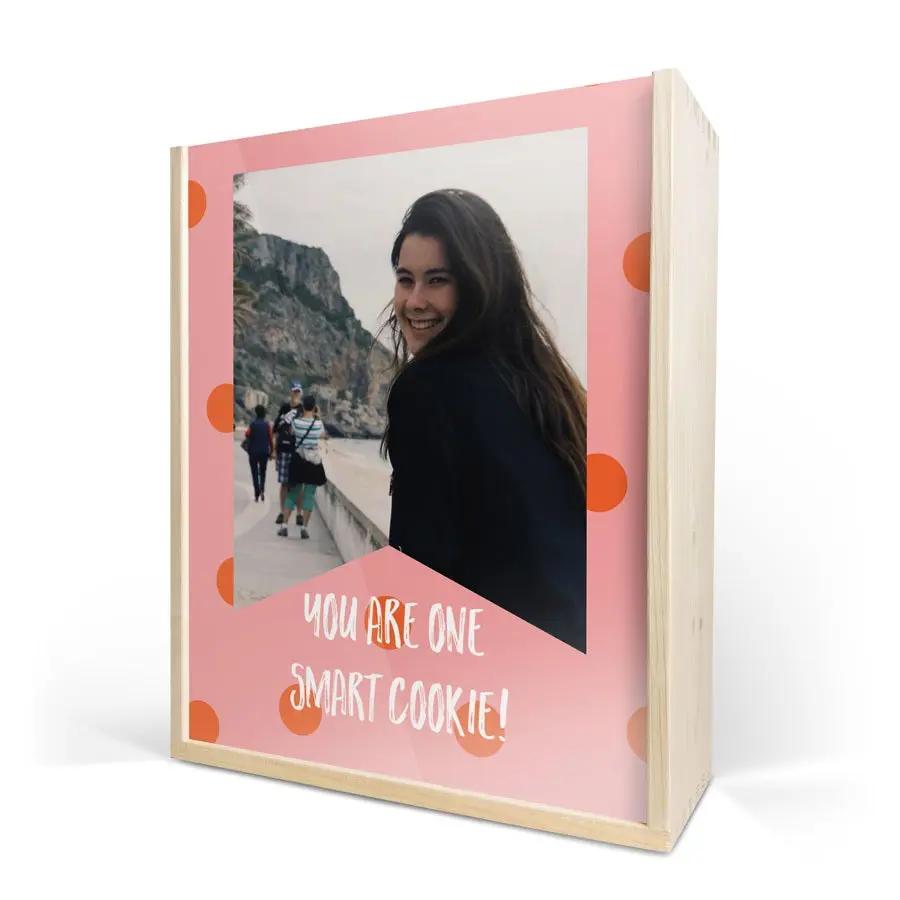 Mais informações sobre os copos de champanhe: Número: 2 peças Marca: Royal Leerdam Tipo: L'esprit Altura: 21,5 cm Volume: 21 cl Mais informações sobre a luxuosa caixa de madeira: Personalização: com foto, colagem, logotipo, nome e/ou texto Localização da personalização: na tampa da caixa de madeira Impressão: imagem perfeita em cores vivas Dimensões da caixa: 36,5 x 12 x 11 cm Dimensões da tampa: 35,6 x 10,5 x 0,3 cm Extra: a caixa de madeira é certificada pelo FSC. Mais informações sobre o champanhe: Nome: Moët & Chandon Tipo de vinho: espumante Volume: 750 ml País de origem: França Variedade de uva: Pinot Noir, Chardonnay, Pinot Meunier