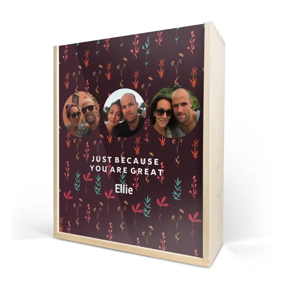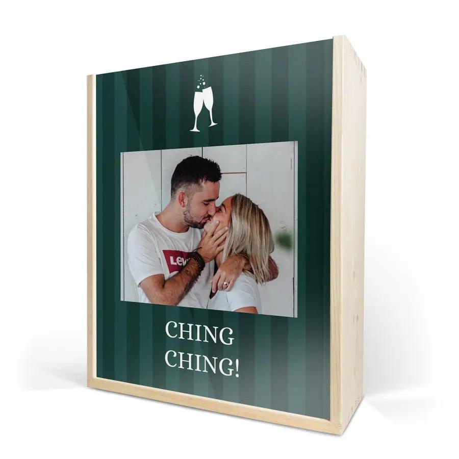Uma requintada garrafa de champanhe Moët & Chandon com dois copos. Em uma luxuosa caixa de madeira personalizada, com seu design. Saúde!