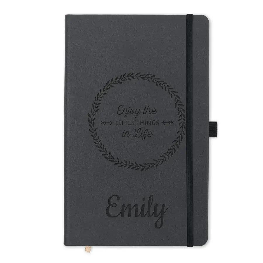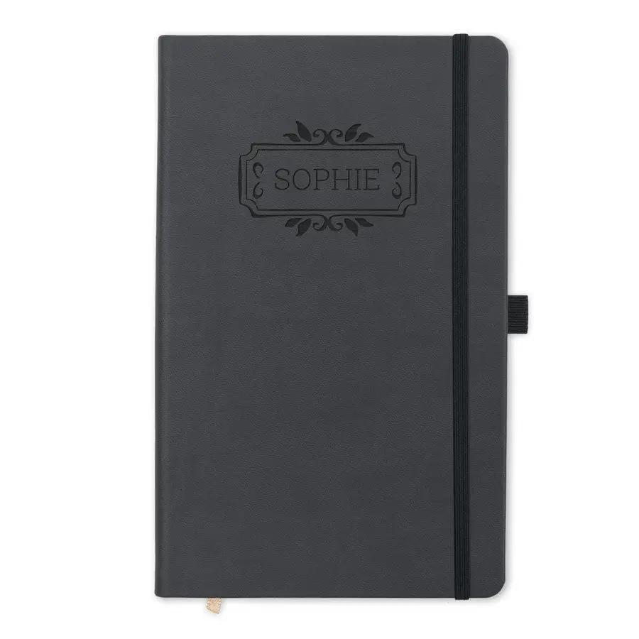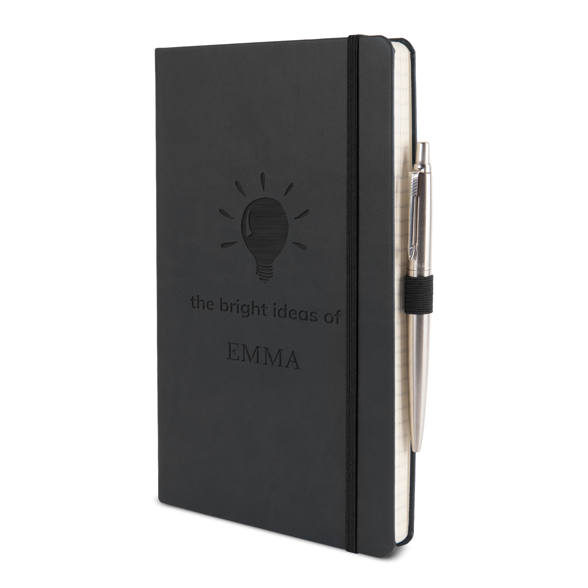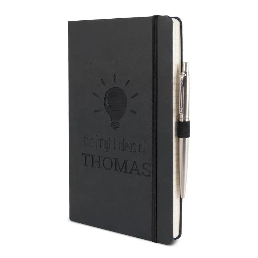 Caderno super original e pessoal gravado com o seu nome. Com muitos designs alegres. Disponível nas cores preto e azul!
