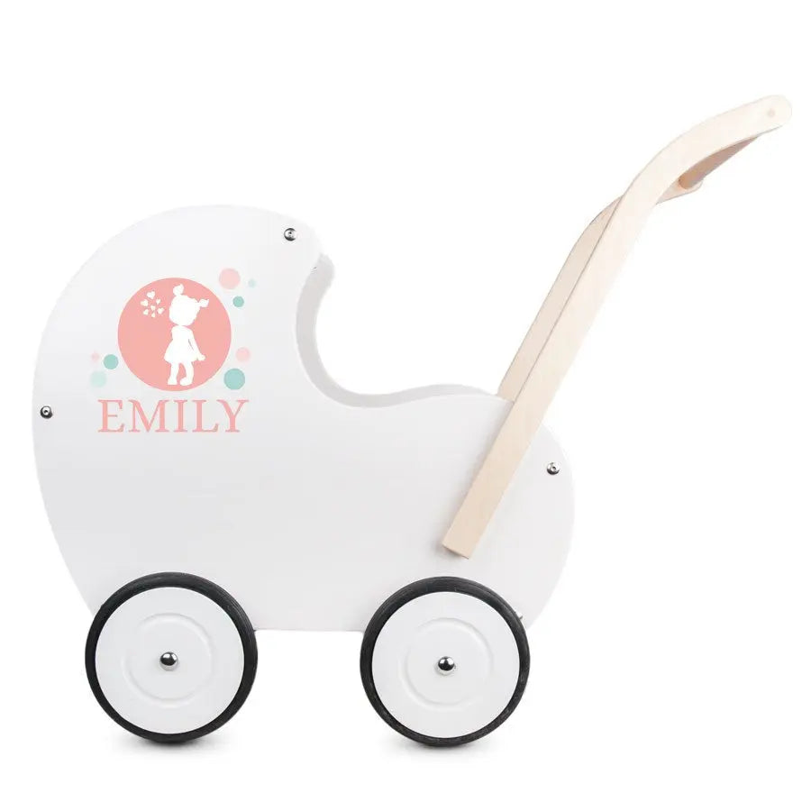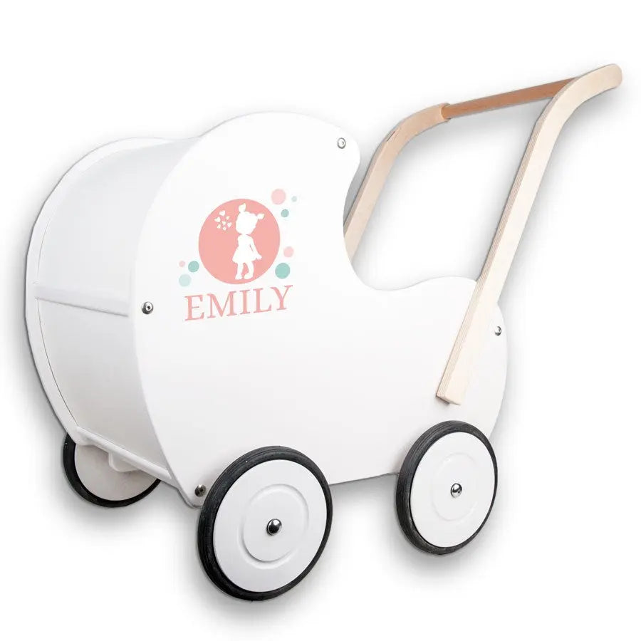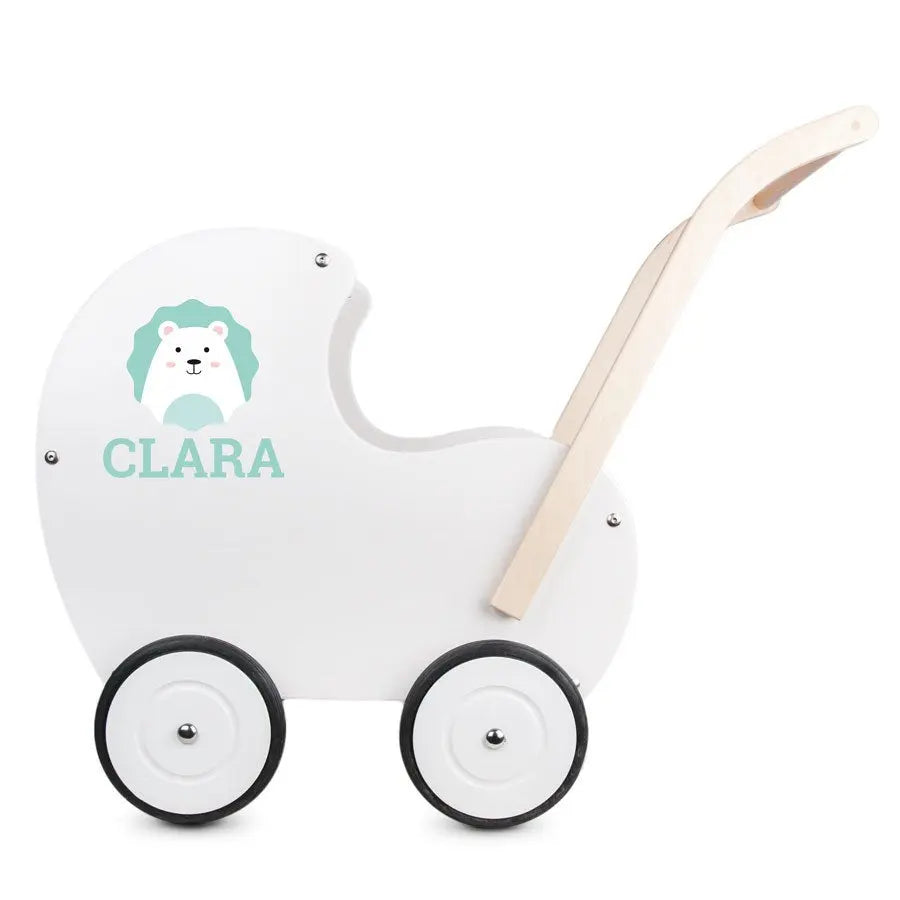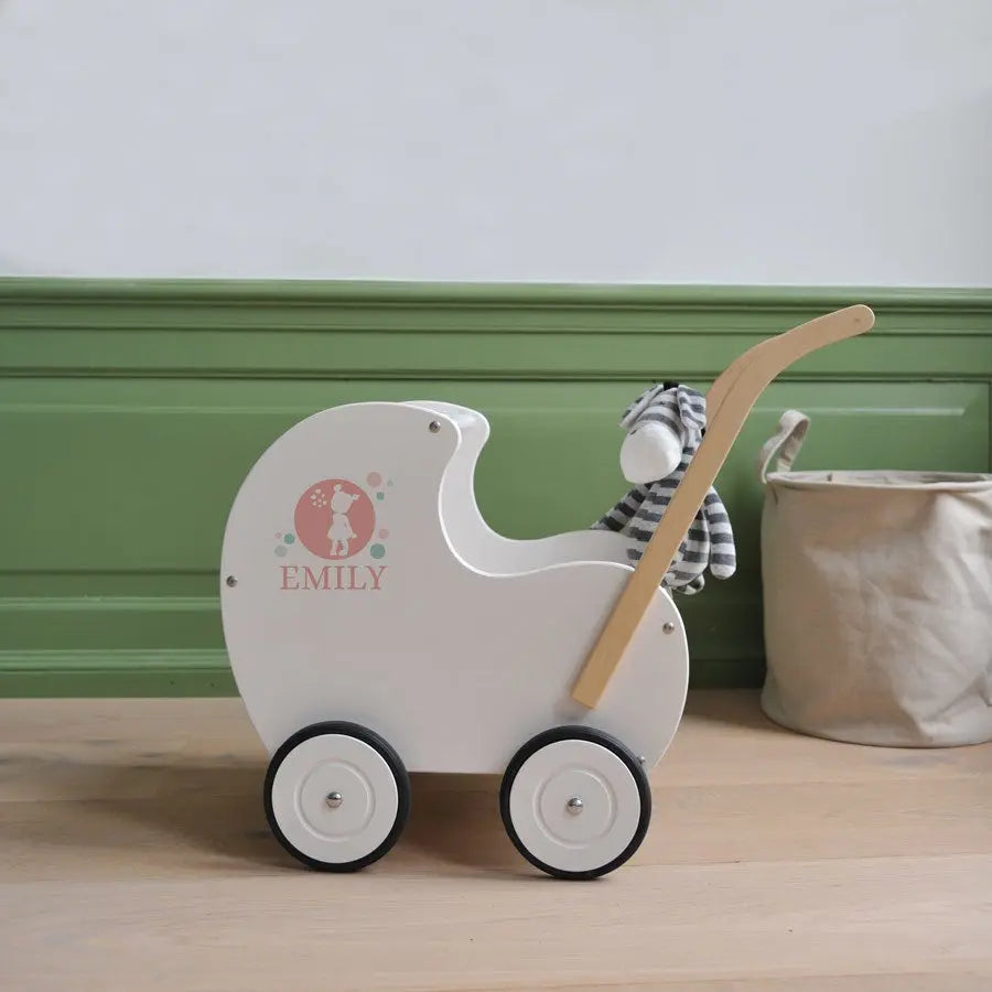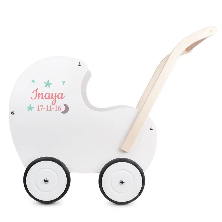 Mais informações sobre o carrinho de madeira: Tipo de madeira: faia e multiplex de faia Dimensões: 48 x 48 x 32 cm Altura do guidão: 59 cm Peso: ± 3 quilos Personalização: vinil laminado de alta qualidade