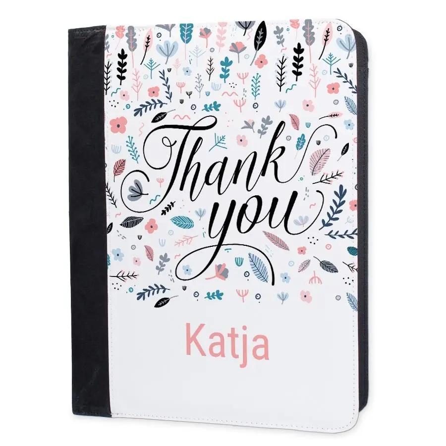 Mais informações sobre a pasta de escrita impressa:Cor: pretoMaterial: aparência de camurça maciaDimensões: 25 x 32,5 cmPersonalização: nome, foto e/ou logoImpressão: nítida e em cores vivasExtras: com laço para caneta, bolso interno e bloco de notas A4A pasta de escrita é recarregável, para que você possa usá-la por muitos anos!