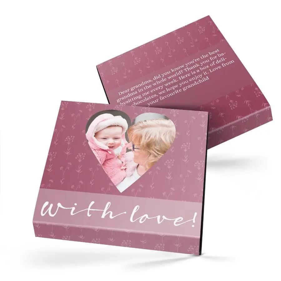 Surpreenda as suas pessoas favoritas com chocolates em uma caixa de presente luxuosa com o seu design. Chocolates deliciosos em uma caixa de presente com foto e nome!