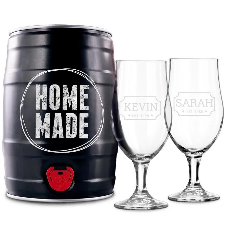 Prepare sua própria cerveja com este kit de cerveja artesanal personalizado, que inclui dois copos de cerveja de luxo!