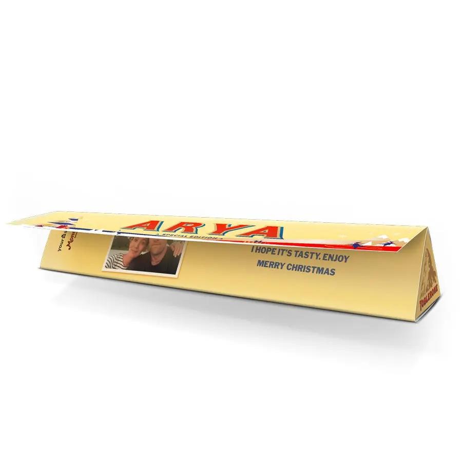 Surpreenda os chocólatras da sua vida com uma barra de Toblerone de Natal personalizada, com o nome, foto e mensagem de sua escolha!