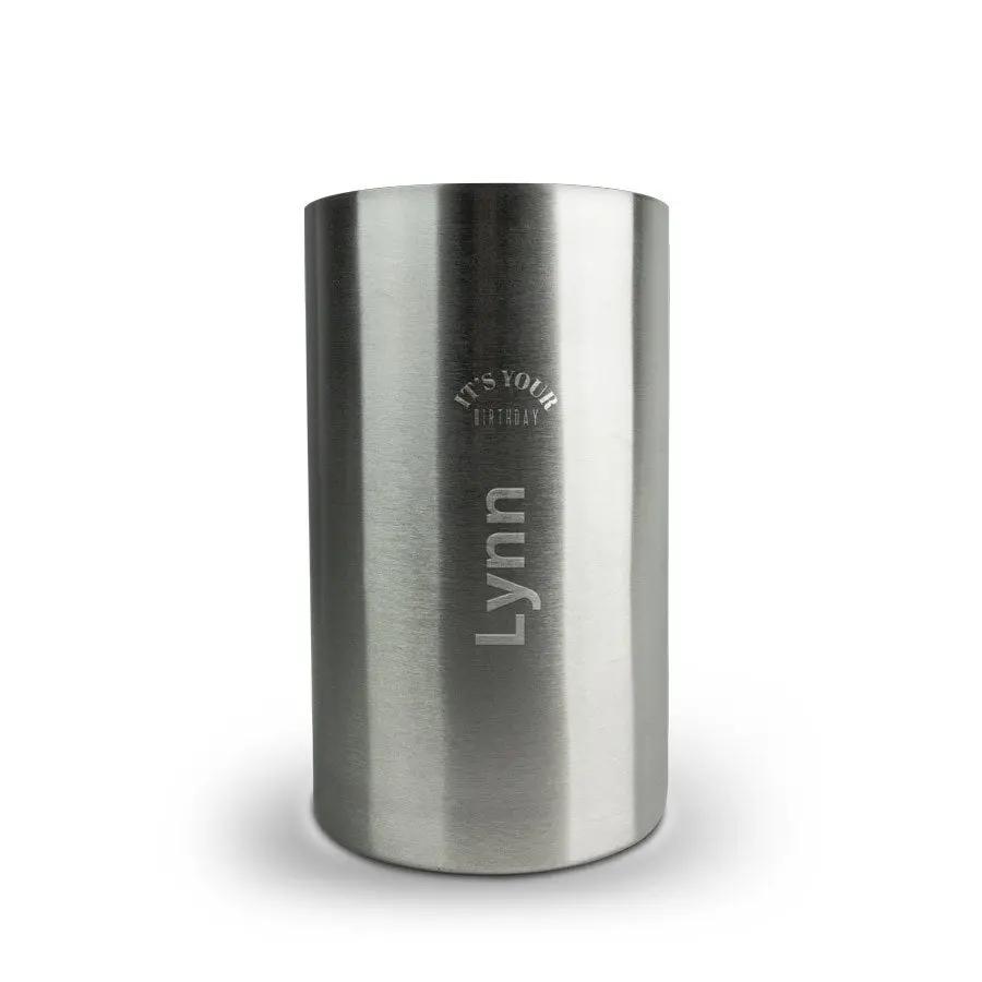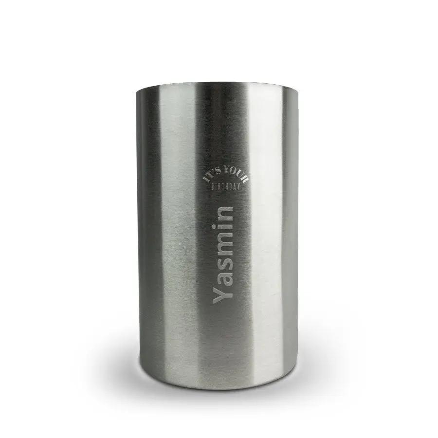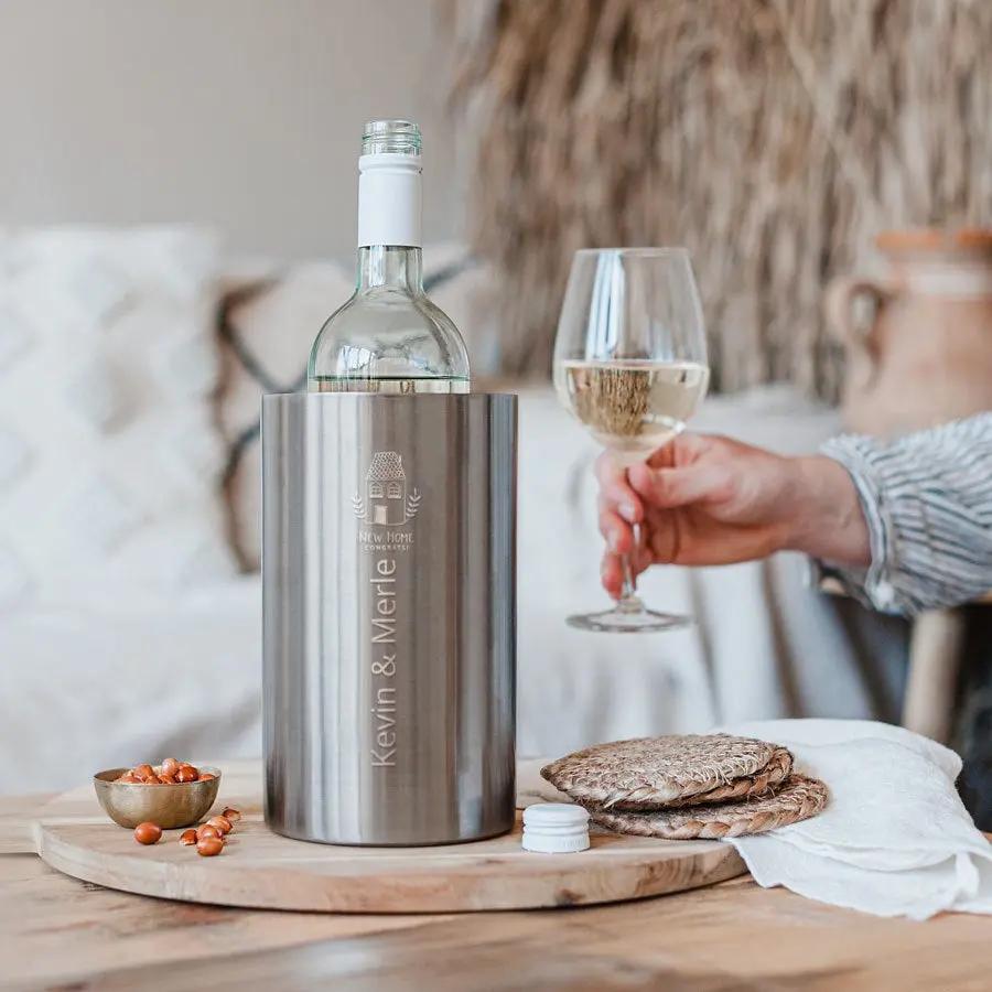 Se você está procurando um presente pessoal luxuoso, escolha este balde de vinho gravado com o nome ou texto de sua preferência.