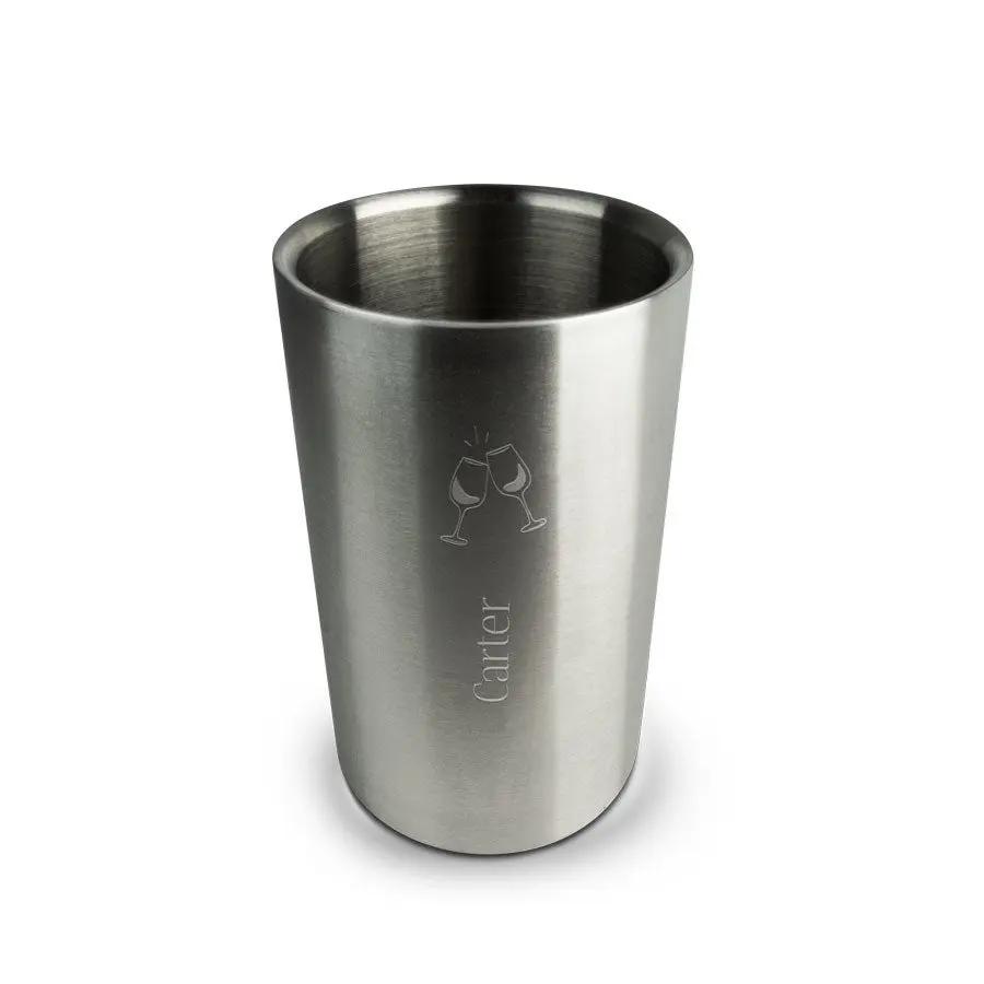 Mais informações sobre o balde de vinho:Material: aço inoxidávelCor: prataDimensões: 20 x 12 x 12 cm / 7,9" x 4,7" x 4,7"Personalização: gravação de texto