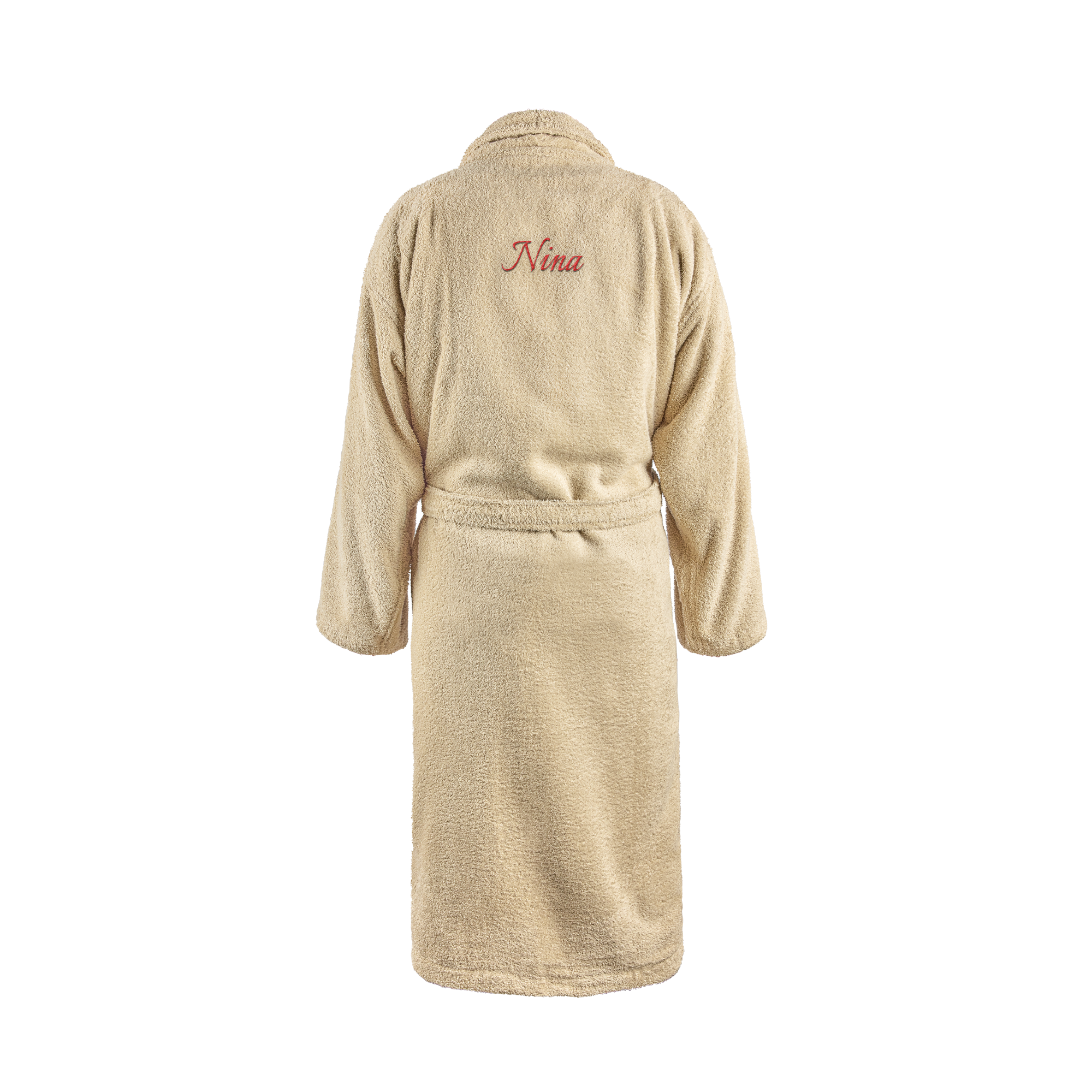 Mais sobre o roupão:Cor: begeTamanho: L/XLMaterial: 100% algodão felpudo macioQualidade: 380 gr/m2Modelo: básicoComprimento: 120 cmLargura do ombro: 21 cmLargura das costas: 65 cmComprimento da manga: 56 cmPersonalização: com nome ou texto nas costasMétodo de personalização: lindo bordadoInformações adicionais: tecido antistático e respirávelInstruções de lavagem: lavar a 40°C