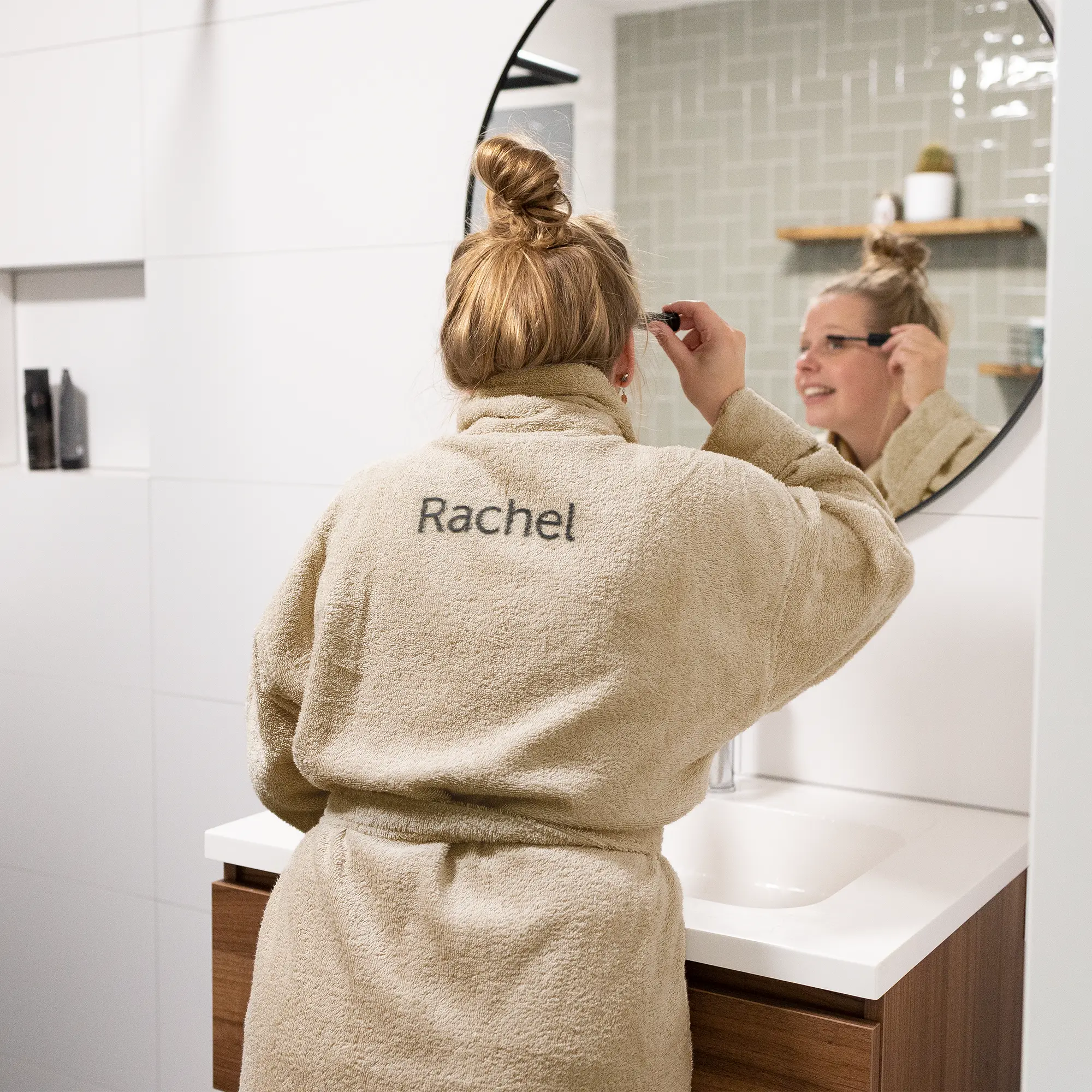 Roupão personalizado para mulheres, bordado com o nome ou texto de sua escolha. Crie o seu agora!