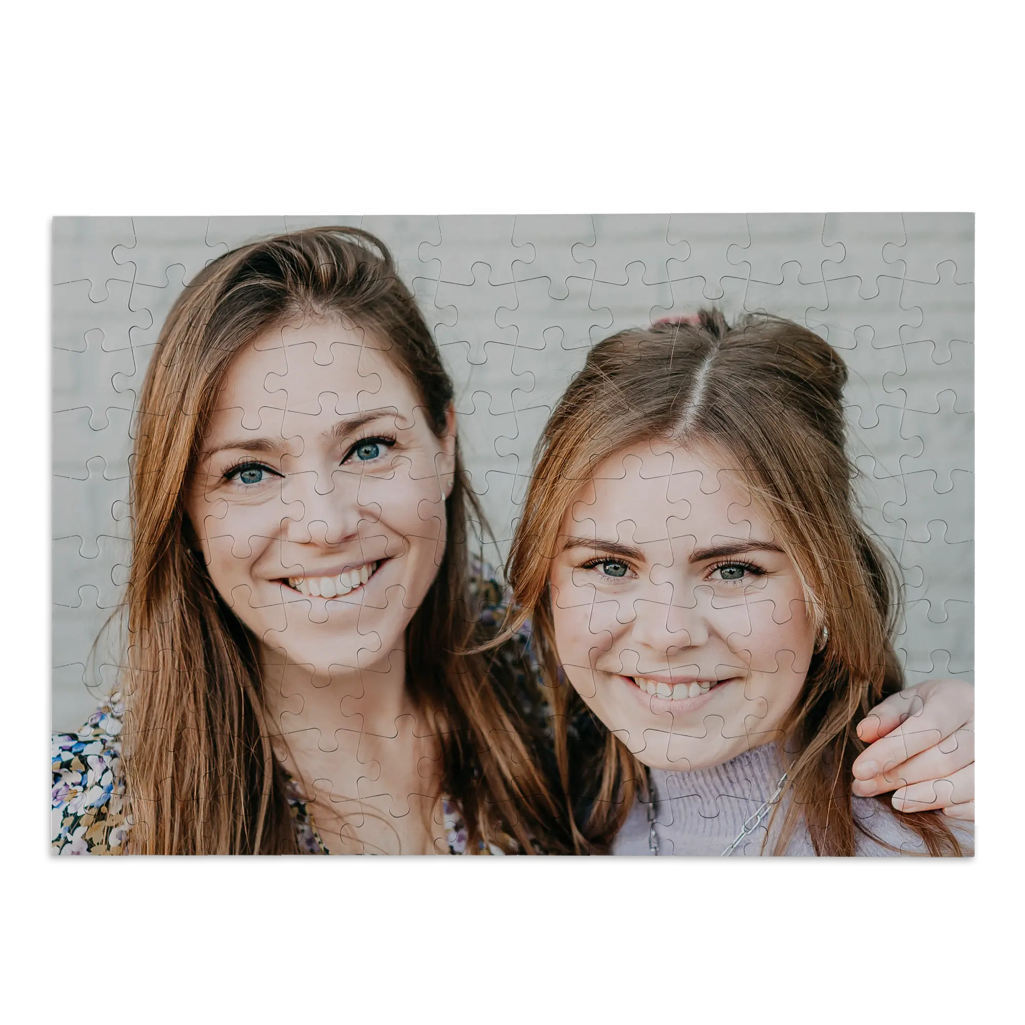 Mais informações sobre o quebra-cabeça personalizado: Número de peças: 120 Material: papelão resistente com camada superior brilhante Dimensões do quebra-cabeça: 28 x 19,5 x 0,2 cm Dimensões da caixa: 24 x 17,5 x 2,5 cm Personalização: com foto e/ou texto Impressão: alta qualidade e em cores vivas